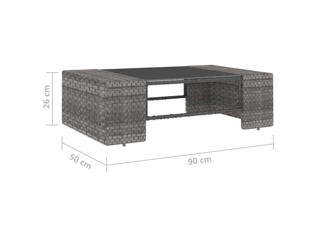 - Materiál: PE ratan, látka (100 % polyester), oceľ s práškovou povrchovou úpravou, tvrdené sklo