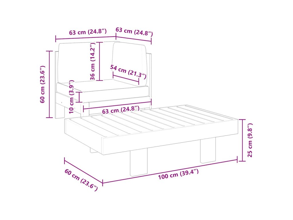 - Rozmery pohovky: 63 x 63 x 60 cm (Š x H x V)