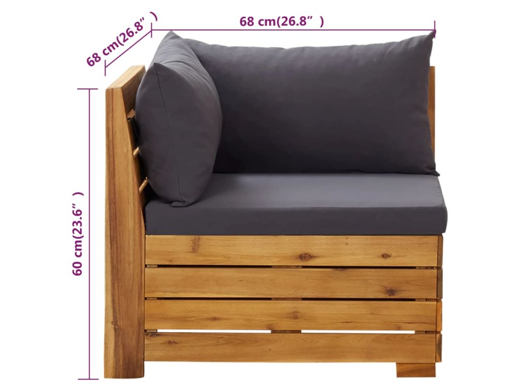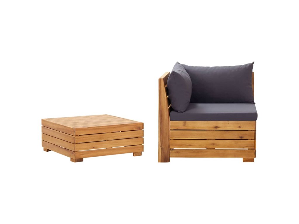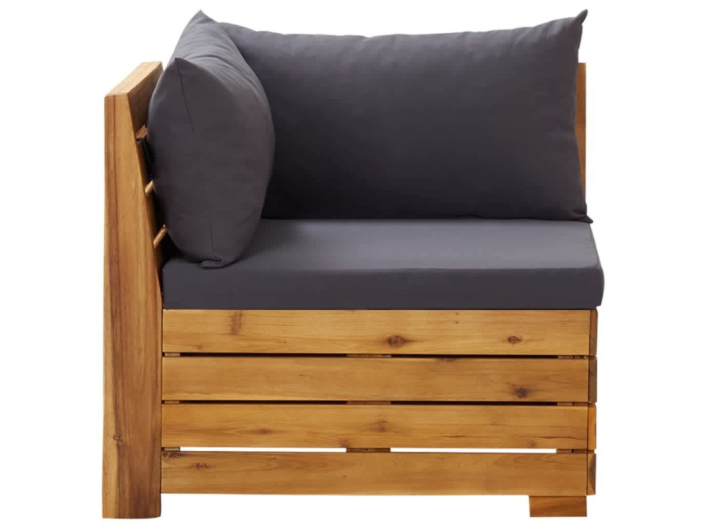 Súprava vonkajšieho nábytku je vyrobená z masívneho akáciového dreva a je odolná voči poveternostným vplyvom a má vysokú životnosť. V kombinácii s hrubo čalúnenými vankúšmi poskytuje táto sedacia súprava maximálne pohodlie. Môžete ju skombinovať s inými modulárnymi segmentmi a vytvoriť si tak svoje vlastné osobné záhradné sedacie súpravy!