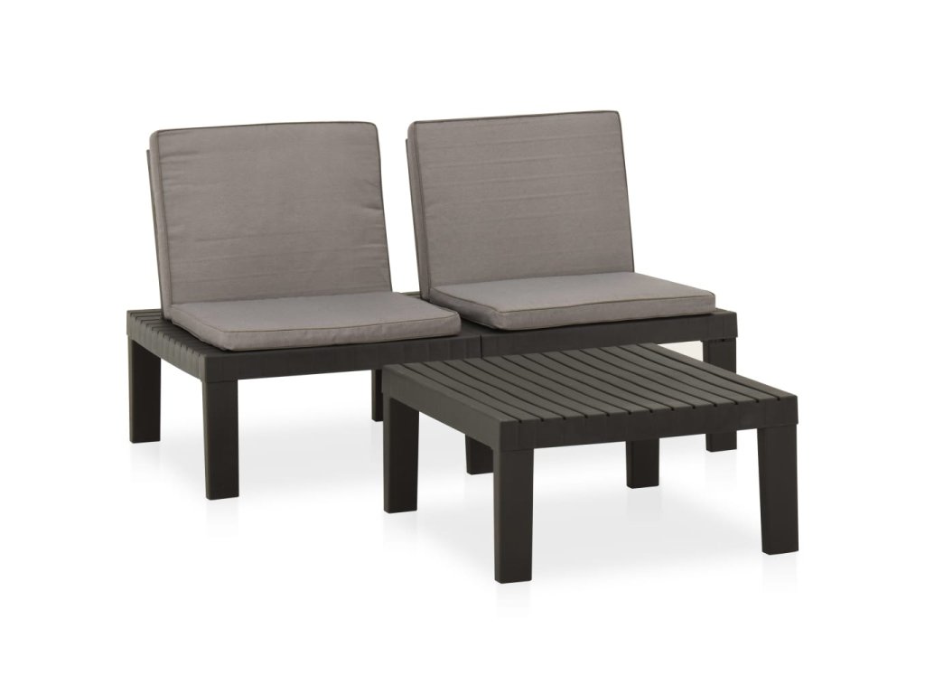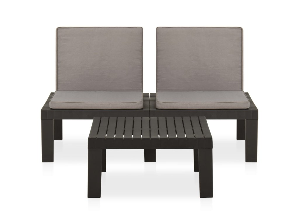 Záhradná sedacia súprava je vyrobená z plastu, vďaka čomu sa ľahko čistí a je stabilná. Vďaka robustnej doske je stôl ideálny na umiestnenie jedla a nápojov. Operadlo a vankúše zvyšujú pohodlie počas sedenia na lavičke.