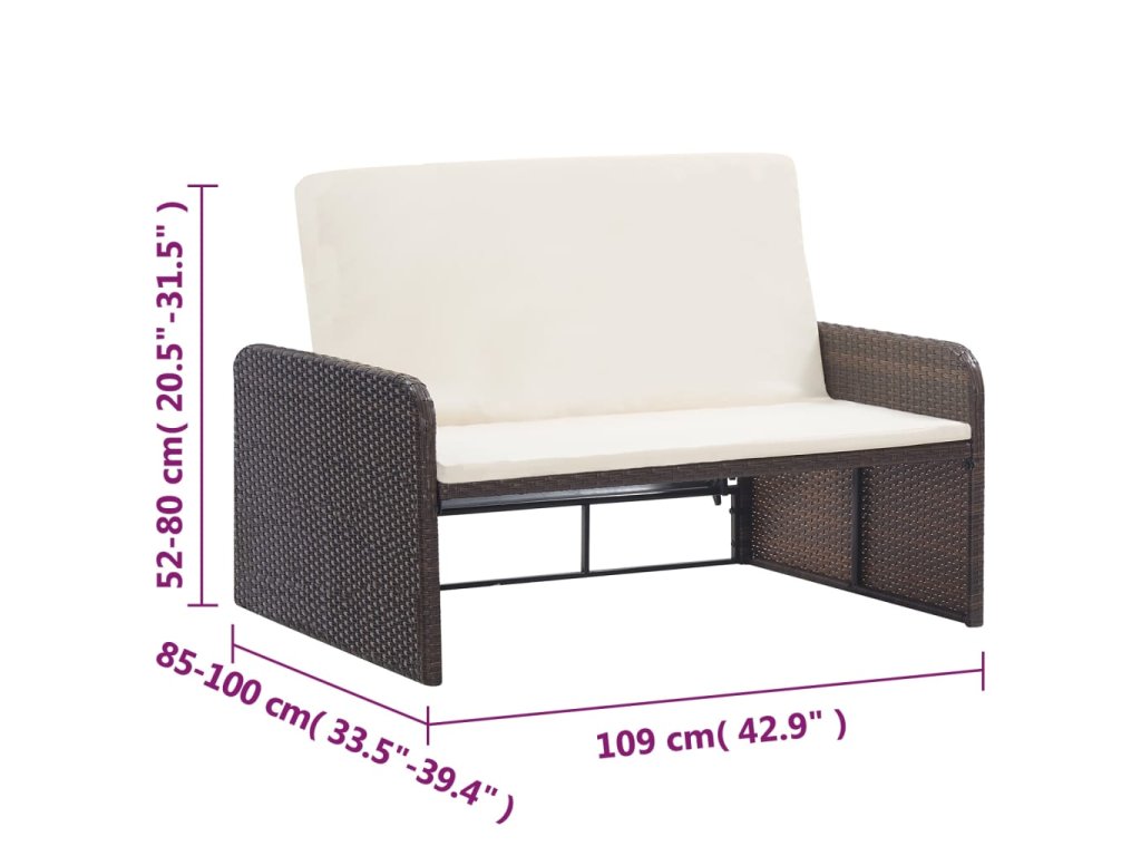 Súprava je vyrobená z vodeodolného pruhovému PE ratanu, ktorý je odolný voči vplyvom počasia. Jednoducho sa čistí, je odolná a vhodná na každodenné použitie. Nastaviteľná pohovka vám umožní nájsť si najpohodlnejšie miesto na sedenie alebo ležanie. Ľahká konštrukcia uľahčuje presúvanie. Táto sada je dodávaná s veľmi pohodlnými, husto polstrovaným sedadlom a vankúšmi za chrbát.