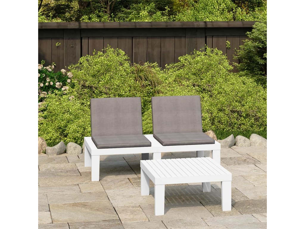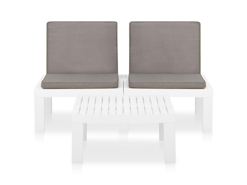 Záhradná sedacia súprava je vyrobená z plastu, vďaka čomu sa ľahko čistí a je stabilná. Vďaka robustnej doske je stôl ideálny na umiestnenie jedla a nápojov. Operadlo a vankúše zvyšujú pohodlie počas sedenia na lavičke.