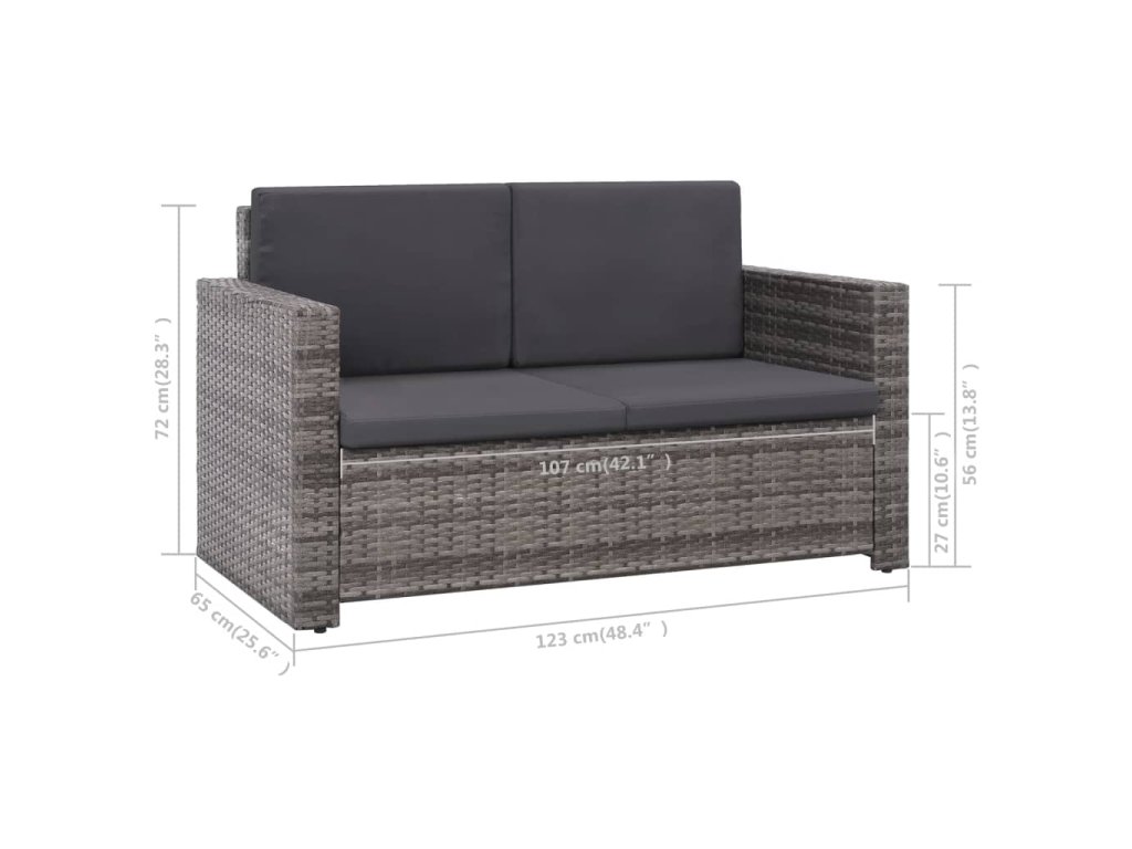 - Rozmery 2-miestnej pohovky: 123 x 65 x 72 cm (Š x H x V)