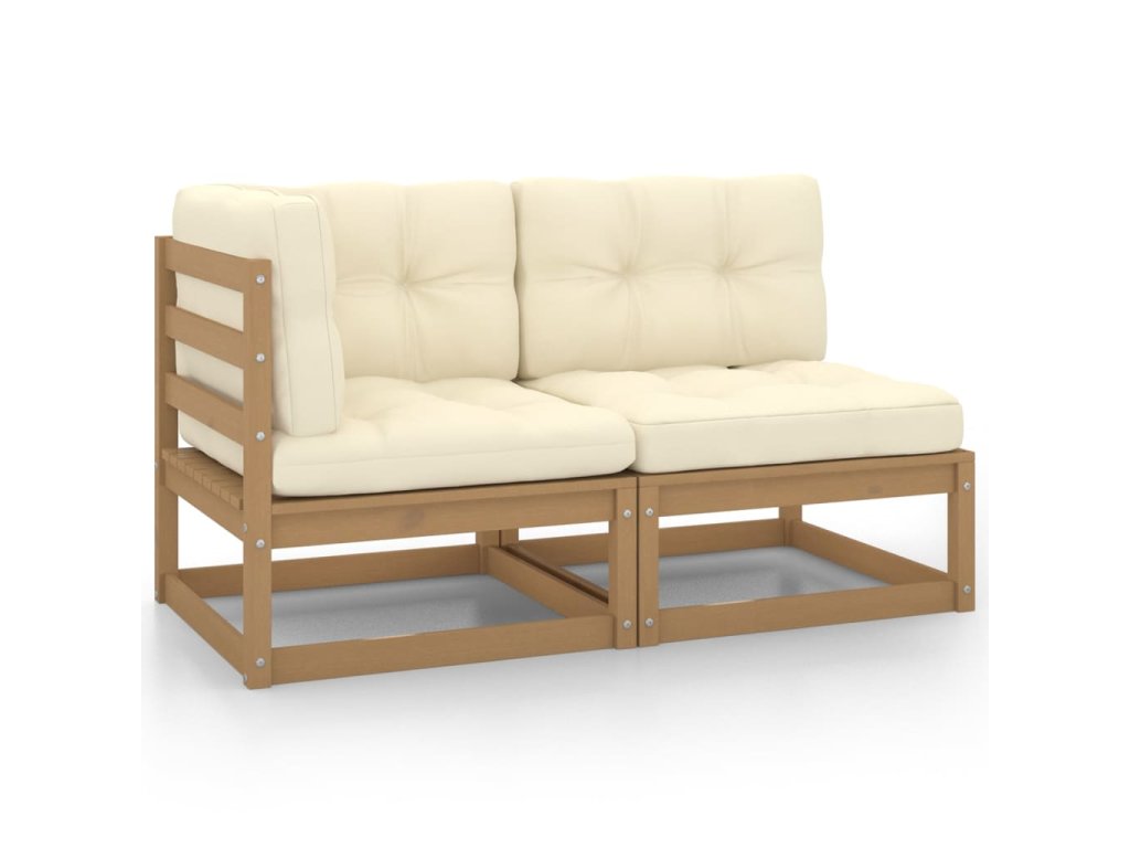 Záhradná sedacia súprava je vyrobená z masívneho borovicového dreva, vďaka čomu je robustná a stabilná. Vankúše jej dodávajú dodatočné pohodlie. Môžete ju skombinovať s inými modulárnymi segmentmi a vytvoriť si tak svoje vlastné konfigurácie záhradného posedenia!