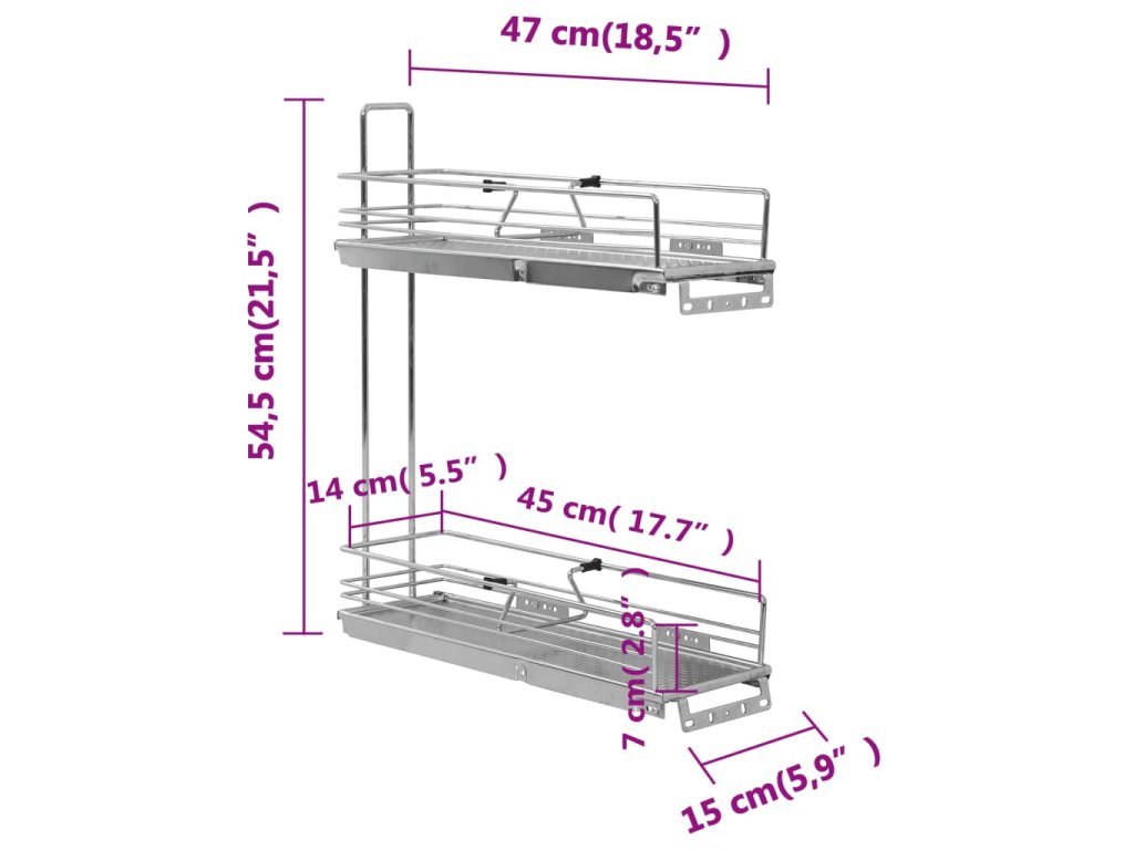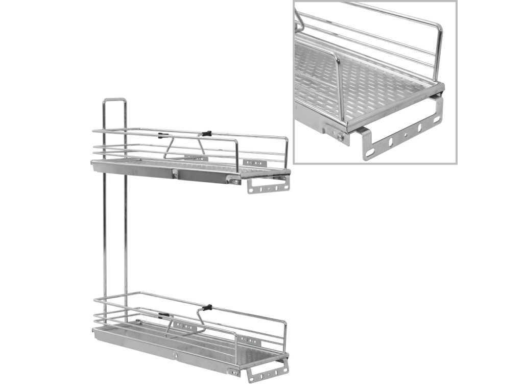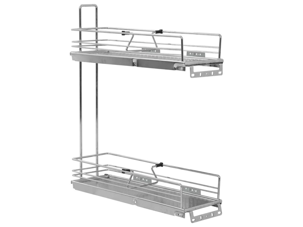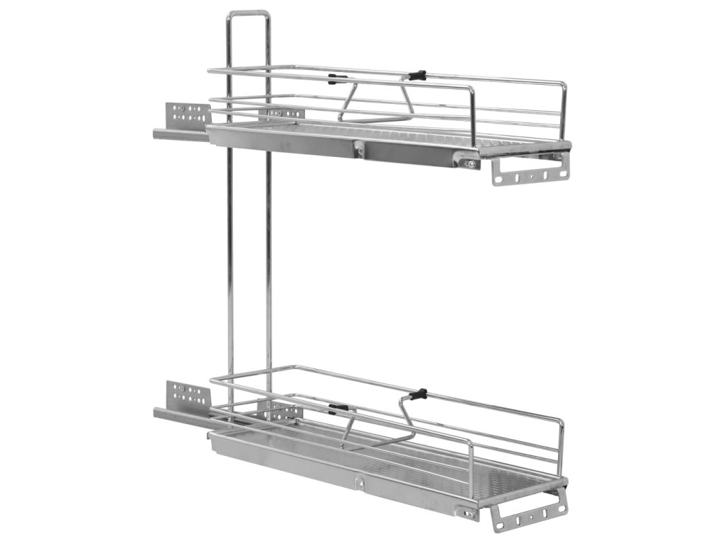Náš vyťahovací drôtený kôš sa dá ľahko namontovať do kuchynskej skrinky pomocou pribaleného montážneho príslušenstva. Dva koše predstavujú jednoduché, ale praktické riešenie pre optimalizáciu úložného priestoru vo vašej kuchynskej skrinke.