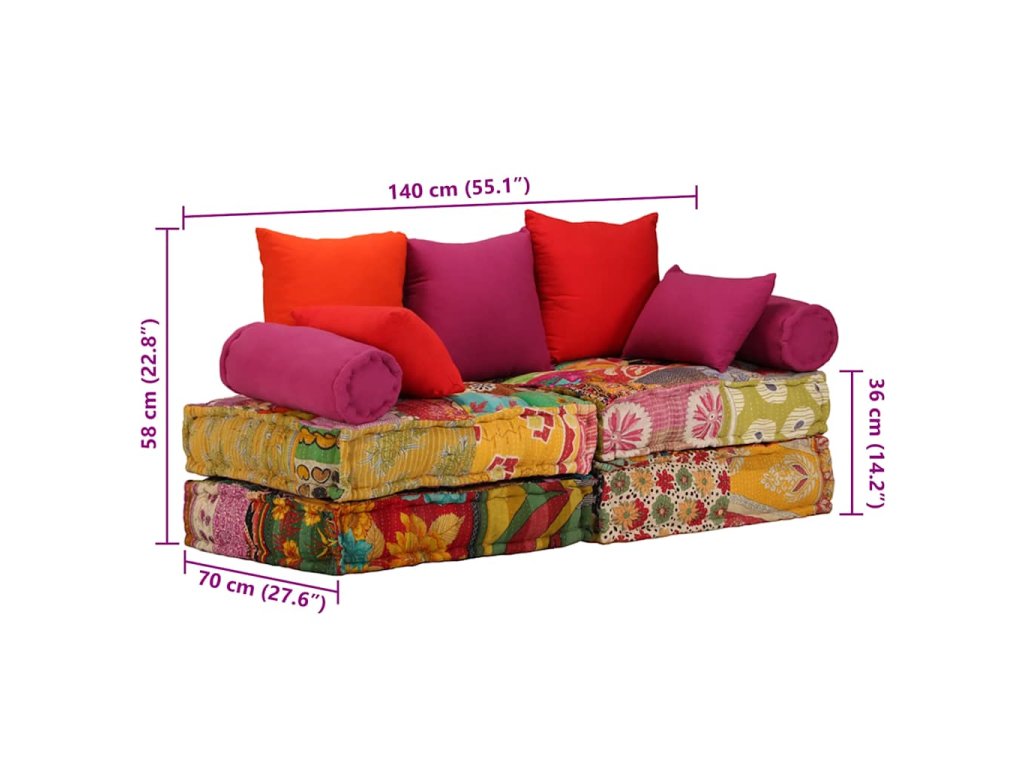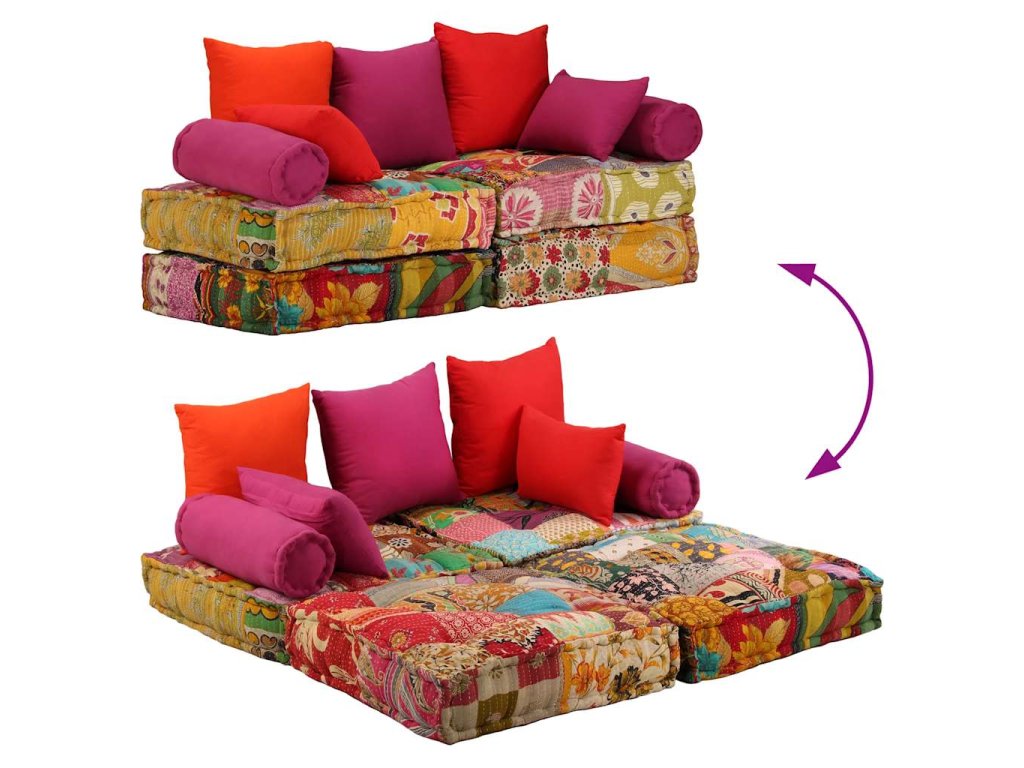 Poznámka: Každý kus nábytku v patchwork dizajne je odlišný, vďaka čomu je každá pohovka jedinečná. Dodanie jednotlivých kusov je náhodné.