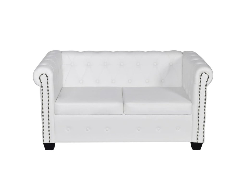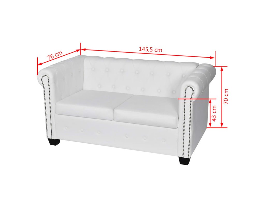 Táto pohovka Chesterfield stelesňuje perfektnú kombináciu pohodlia a sofistikovanosti a stane sa tak skvelým doplnkom do domácnosti alebo do kancelárie. 2-miestna pohovka s ozdobnými gombíkmi na operadlách a dekoratívnym lemom na elegantne zahnutých opierkach na ruky dodá vášmu interiéru nádych luxusu, noblesy a štýlu.