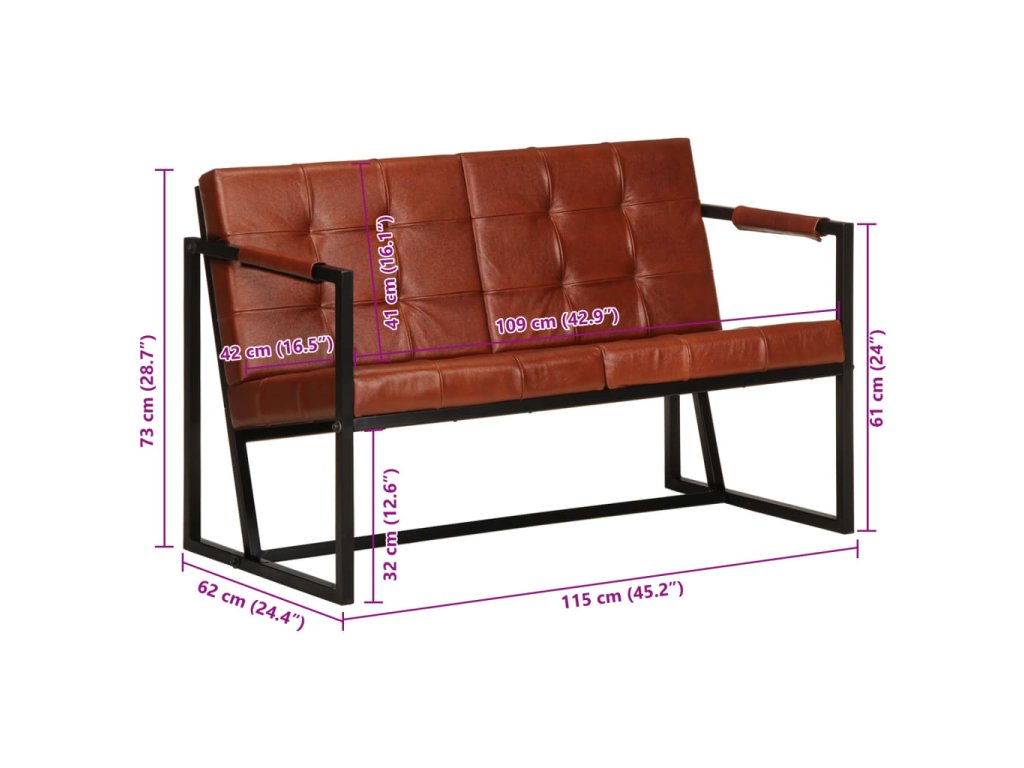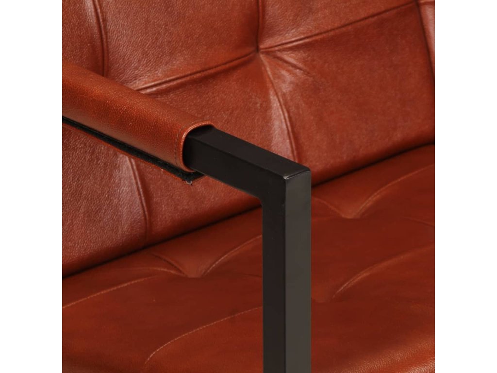 Táto pohovka je čalúnená odolnou pravou kozou kožou, ktorá poskytuje vynikajúci zážitok počas sedenia. Pohovka je podopretá oceľovými nohami s práškovým povrchom, vďaka čomu je stabilná a odolná.