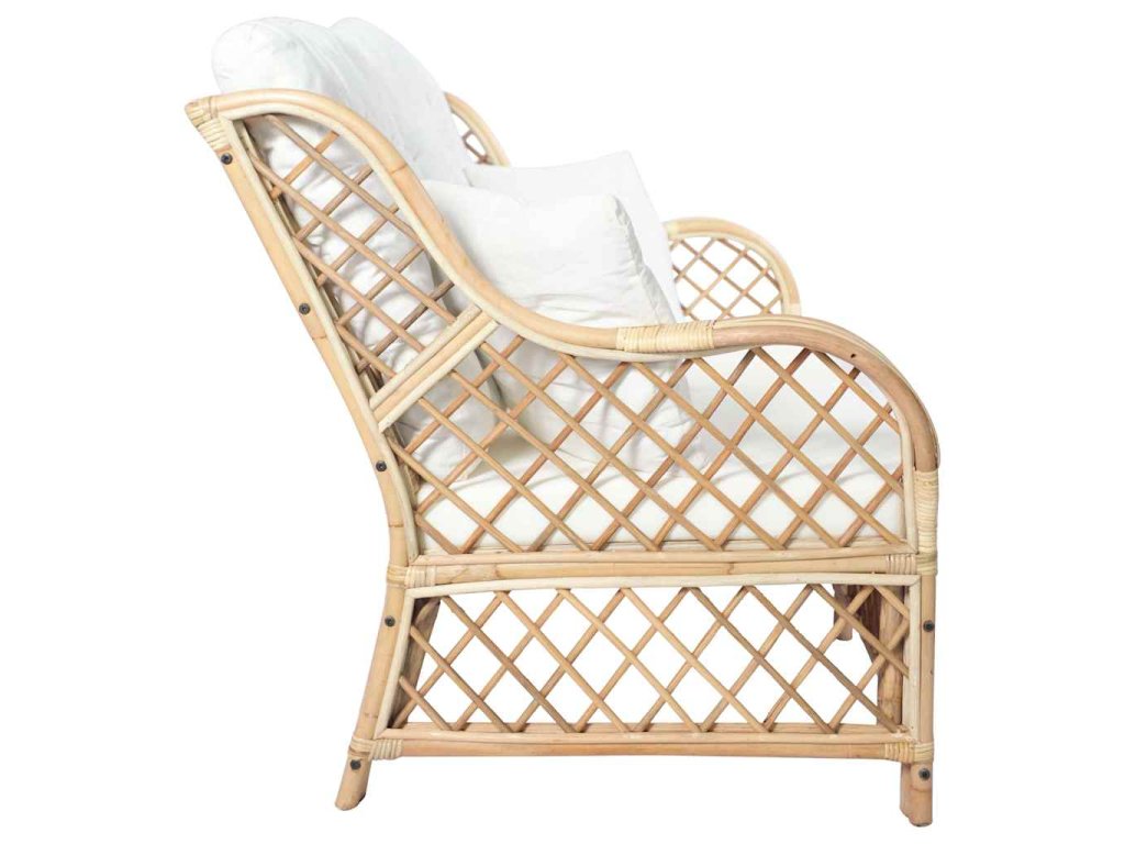 Táto stolička je vyrobená z prírodného ratanu, vďaka čomu je odolná a ľahko sa čistí. Pribalené podložky a vankúše poskytujú maximálne pohodlie a pomáhajú uvoľniť telo po náročnom dni. Je ideálna pre rodinné filmové večery, hranie videohier, čítanie alebo sledovanie televízie.