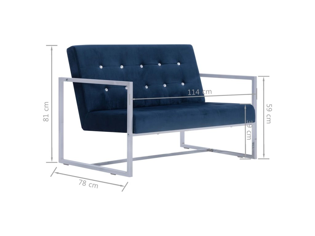 Sedačka pre dvoch má poťah z odolného zamatu s mäkkou molitanovou výplňou, a tak poskytuje optimálne pohodlie pri sedení. Rám z dreveného masívu a vysokokvalitné chrómové nohy pohovke dodávajú vynikajúcu stabilitu a trvácnosť. 2-miestna pohovka sa jednoducho montuje.