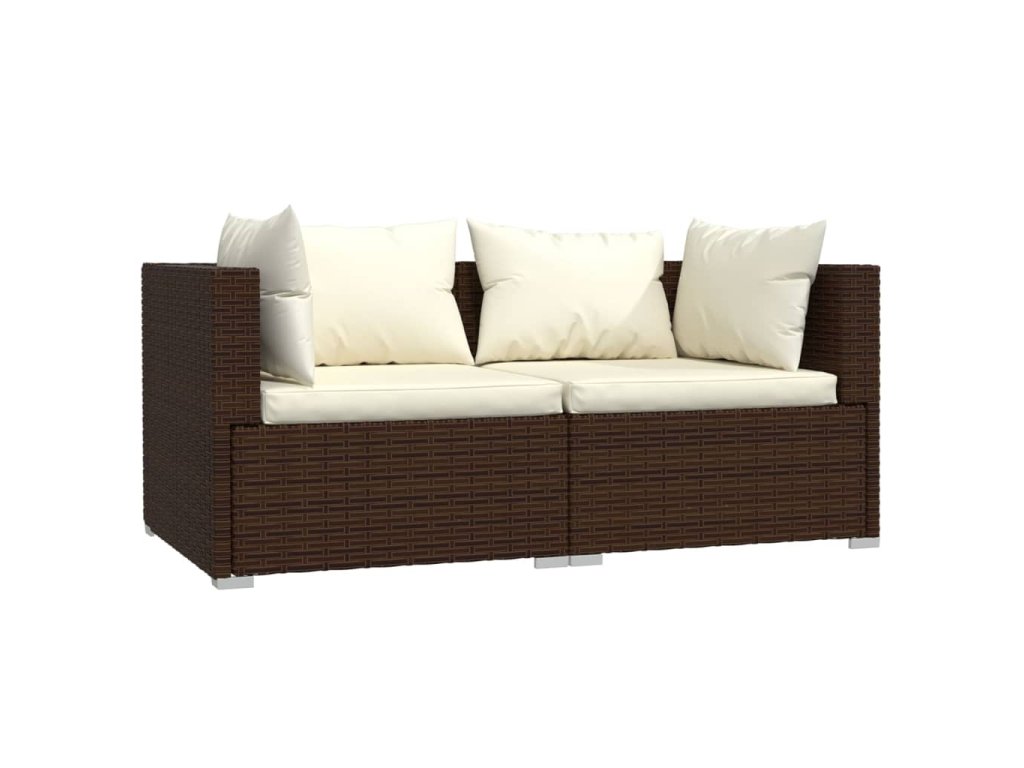 Táto sedačka na terasu má pevný oceľový rám s práškovým nástrekom a plastové chrómové nožičky, ktoré sú veľmi trvácne. Dvojmiestna pohovka je navrhnutá z vodeodolného PE ratanu, vďaka čomu je odolná a vhodná na každodenné používanie vonku. Vďaka ľahkej konštrukcii sa záhradná sedačka v prípade potreby ľahko presúva. Hrubo polstrované a odnímateľné vankúše zaručia pohodlie pri sedení. Modulárny dizajn navyše umožňuje nastaviť súpravu do ľubovoľného usporiadania, alebo ju skombinovať s inými modulárnymi časťami nábytku presne podľa vašich potrieb!