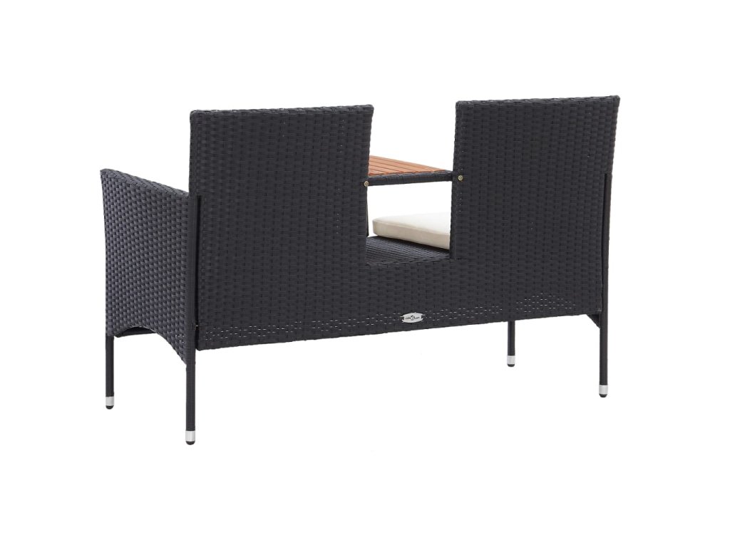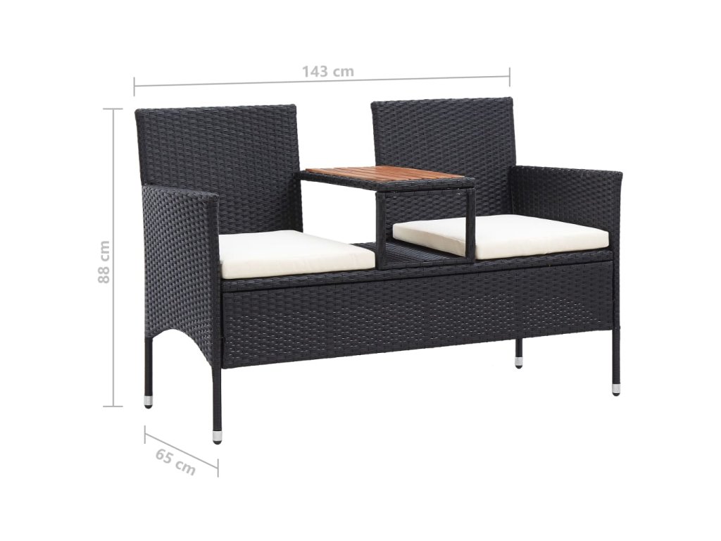 Súprava je vyrobená z PE ratanu, čo je vodovzdorný materiál, ktorý je odolný voči poveternostným vplyvom. Takže sa dá súprava ľahko očistiť, je trvácna a vhodná aj na každodenné používanie. Lavička má pevný oceľový rám s práškovou povrchovou úpravou. Je ľahká, a preto ju môžete bez problémov presunúť, kam potrebujete. Dve sedadlá sú spojené čajovým stolíkom, na ktorý si môžete odložiť nápoje či obľúbené knižky, aby ste ich mali vždy poruke. Hrubé odnímateľné vankúše sú veľmi pohodlné. Ľahko sa čistiace polyesterové poťahy so skrytými zipsmi je možné zvliecť a vyprať.
