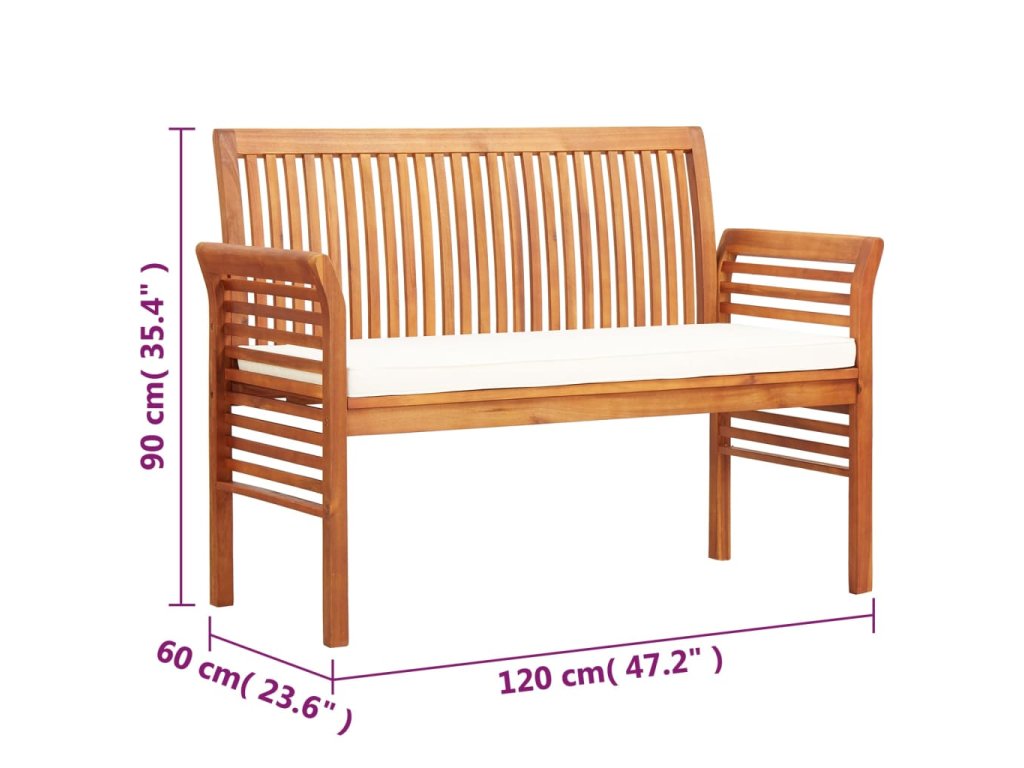 Rám z akáciového dreva s prírodnou olejovou povrchovou úpravou dodáva tradičný a prívetivý vzhľad vašim vonkajším priestorom. Lavica je odolná a vydrží dlhé roky používania. Súčasťou balenia sú pohodlné podušky pre čo najlepší odpočinok. Vodeodolné podušky sa navyše ľahko čistia. Ideálne sa hodí pre nedeľné pohodová popoludnie s knihou alebo ako dodatočné miesto na sedenie pre hostí.