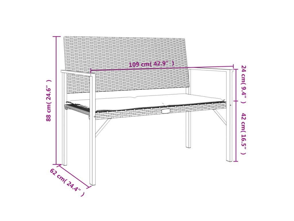 - Pevný a stabilný rám: Vďaka oceľovému rámu je záhradné sedadlo robustné a stabilné na každodenné používanie vonku.
