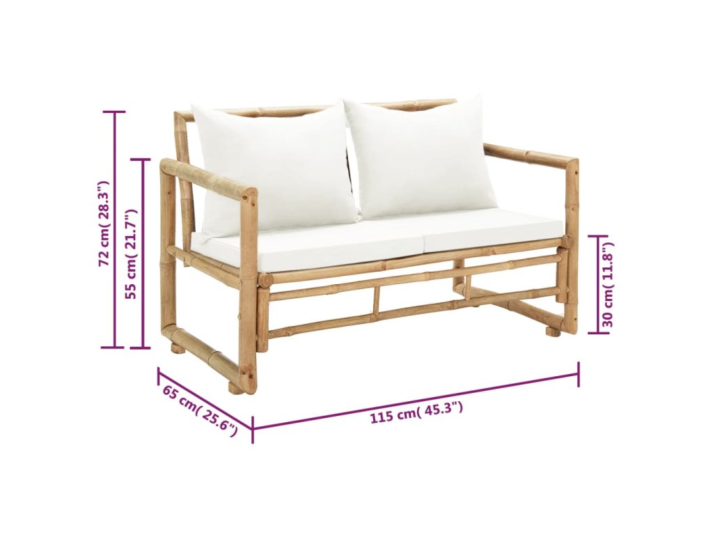 Táto trvácna lavička je pohodlná a poskytne vám ideálne miesto na čítanie či oddychovanie. Je vyrobená z vysokokvalitného bambusu, ktorý je vodovzdorný a odolný voči poveternostným vplyvom. Dá sa ľahko očistiť pomocou navlhčenej handričky. Hrubé, odnímateľné podložky na sedadlo a operadlo poskytujú optimálny komfort pri sedení. Autentická prírodná farba bambusu do vašich vonkajších priestorov vnesie nádych exotiky.