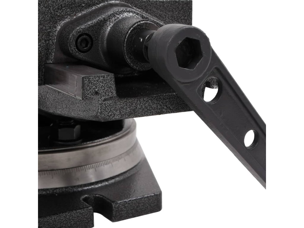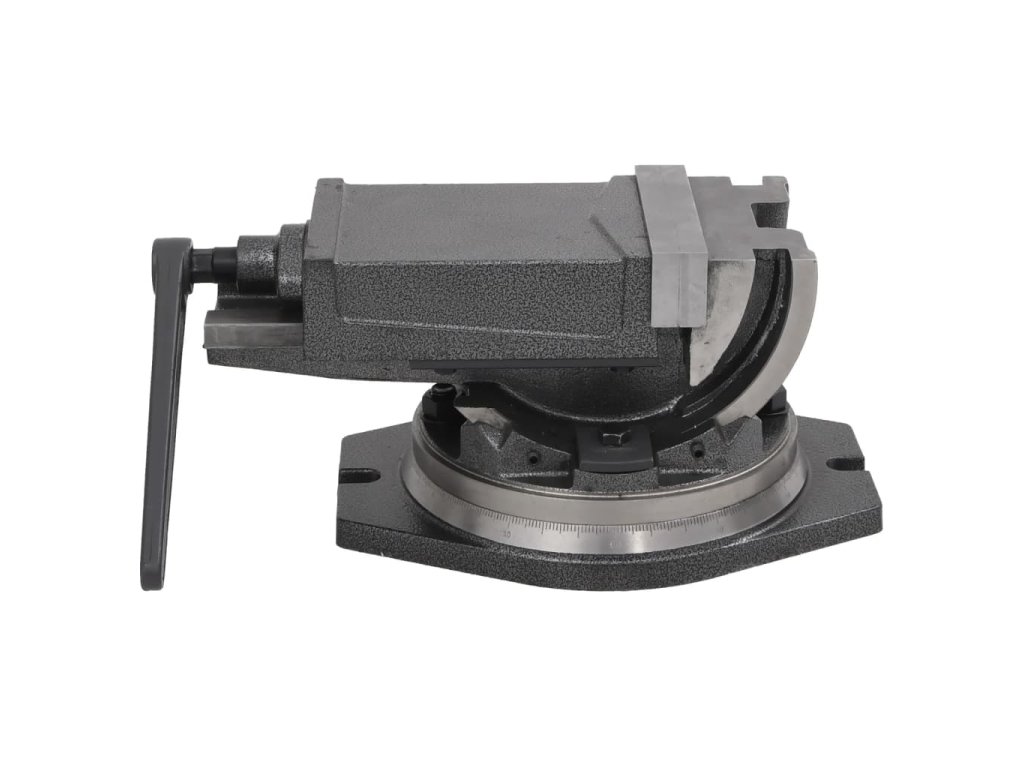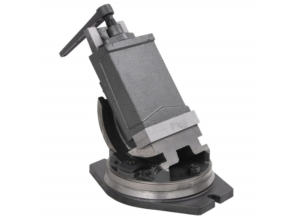 Pevný závit umožňuje prispôsobiť rozsah otvorenia podľa obrobku. Čeľuste sú kalené a budú preto vyhovovať náročným požiadavkám na vŕtanie a upínanie. Dvojosé uchytenie a jemné delenie stupnice umožňujú náklon 0 – 90° a dá sa pripevniť upínacou pákou.