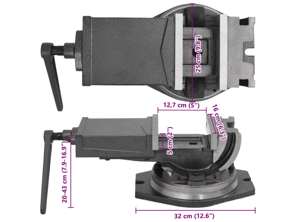 Tento nástroj má stabilnú základňu, ktorú môžete ľahko pripevniť k pracovnému stolu. Tento zverák je nevyhnutný pre kvalitné a presné vŕtanie, zváranie, frézovanie, rezanie a brúsenie.