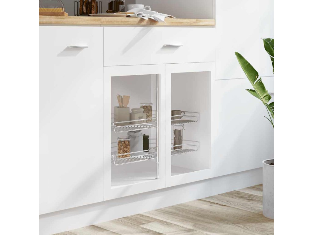 Náš drôtený kôš sa dá ľahko namontovať do kuchynskej skrinky pomocou pribaleného montážneho príslušenstva. Dva koše predstavujú jednoduché, ale praktické riešenie pre optimalizáciu úložného priestoru vo vašej kuchynskej skrinke.