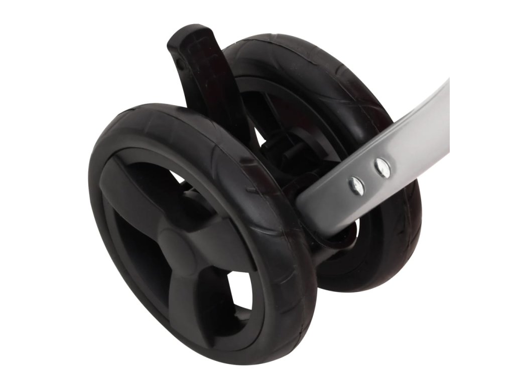 - Praktické kolieska: Predné kolieska sa dajú otáčať vo všetkých smeroch pre ľahký pohyb, zatiaľ čo zadné kolieska s brzdou môžu pomôcť pri fixácii kočíka v prípade potreby.