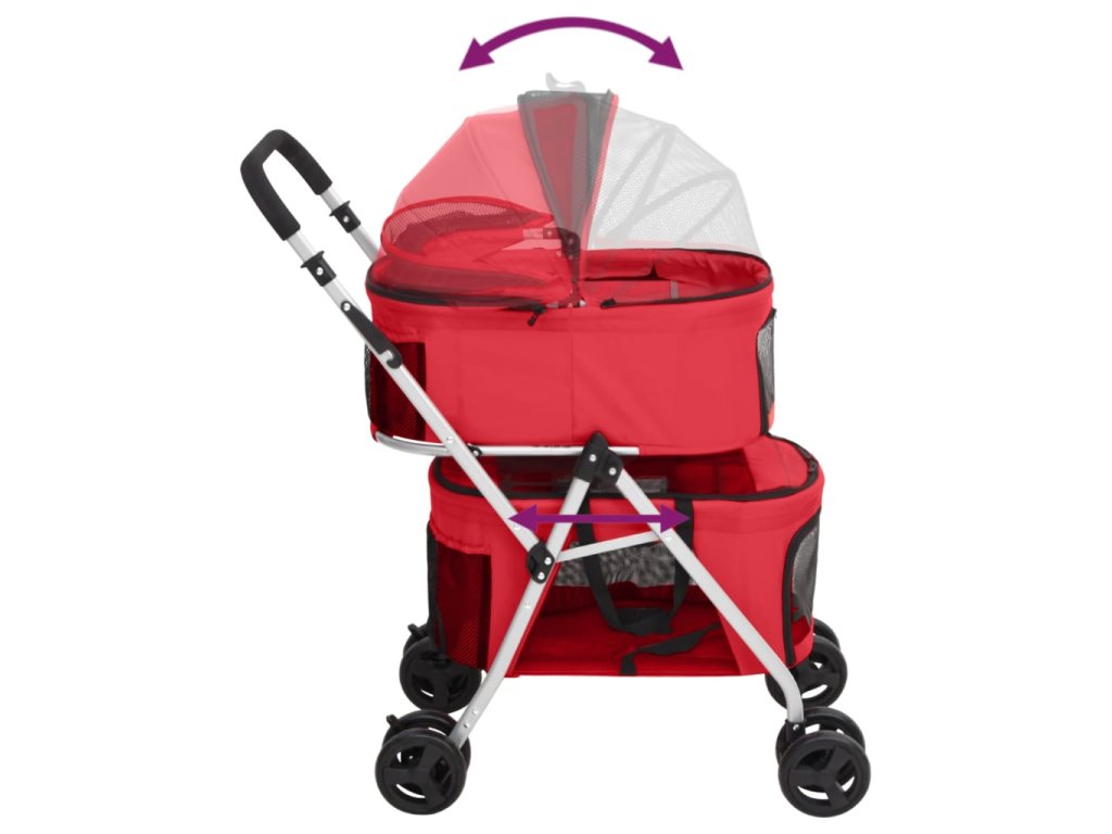 - Dodatočný úložný priestor: Kočík pre psa má na zadnej strane vrecká na uloženie maškŕt, vôdzky, hračiek a iných potrebných predmetov.