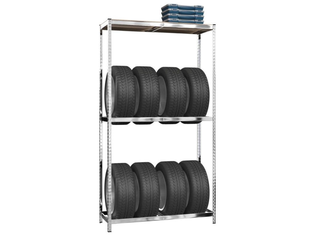 Úložné police sú vynikajúcou voľbou do garáže, pretože poskytujú dostatok priestoru na prehľadné usporiadanie pneumatík.
