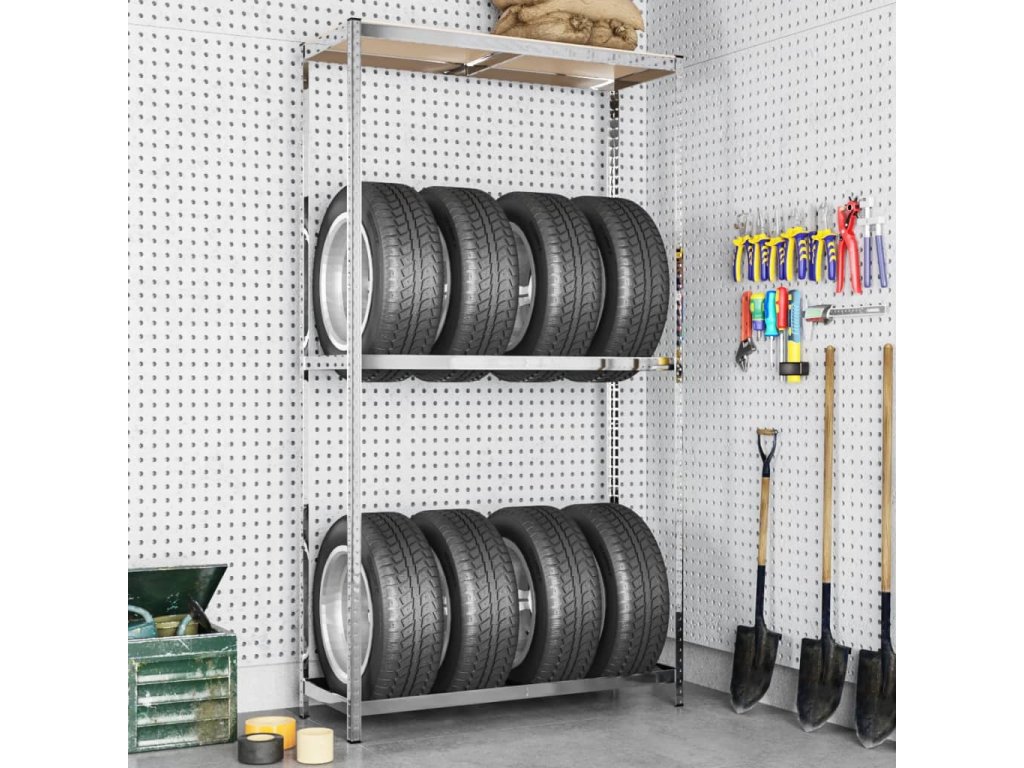 - Flexibilné uskladnenie vecí: Vrstvy sú výškovo nastaviteľné. Poskytuje tak dostatok úložného priestoru pre všetky veľkosti pneumatík, ktoré chcete uložiť, a udrží priestor čistý a dobre organizovaný.
