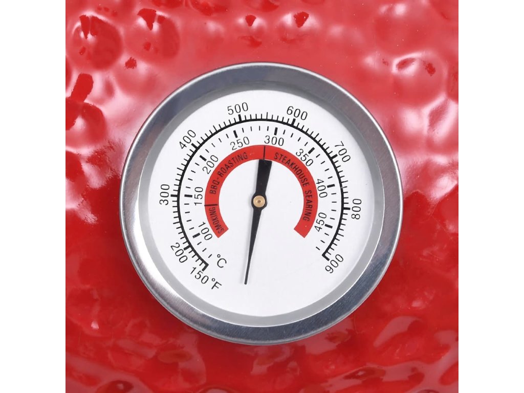Keramický gril má veľmi pevné sklopné veko s prieduchom a vstavaným teplomerom. Vďaka vrstvenému prieduchu môžete ľahko ovládať prúdenie vzduchu aj teplotu. Vysokokvalitná keramika s glazovanou jamkovou vonkajšou povrchovou úpravou je trvácna a esteticky vyzerajúca. Vďaka tomu umožňuje jedinečný proces varenia, ktorý jedlu dodáva chuť a zároveň ho udržiava výnimočne krehké! Nožičky z práškovanej ocele dodávajú grilu mimoriadnu stabilitu.