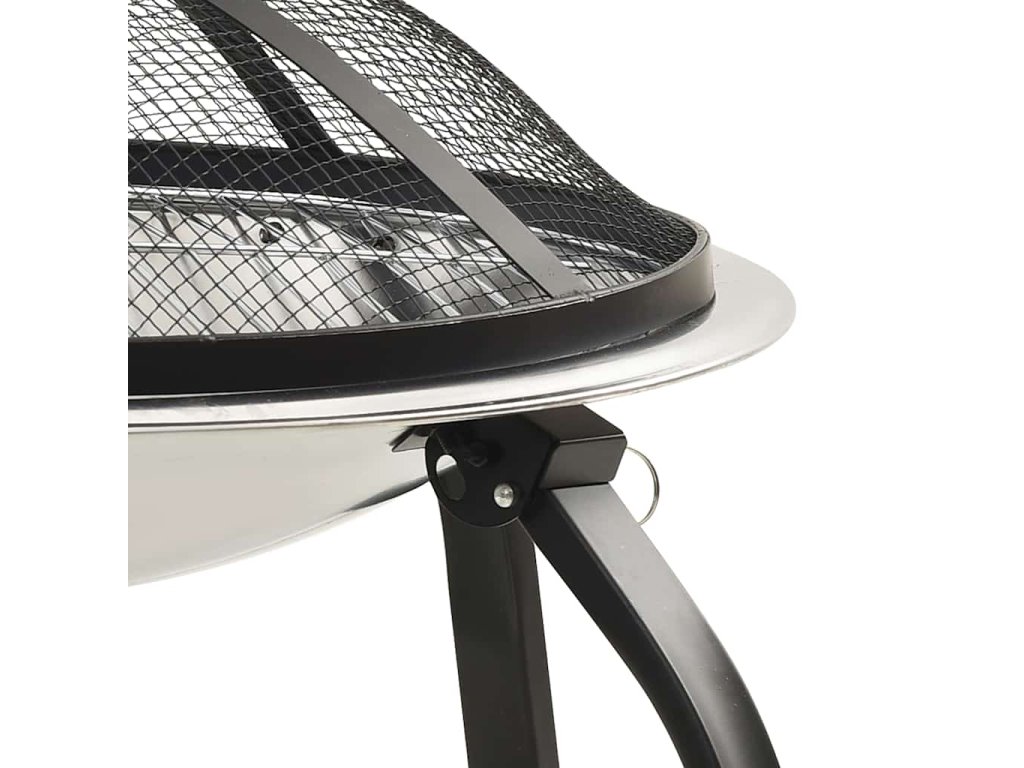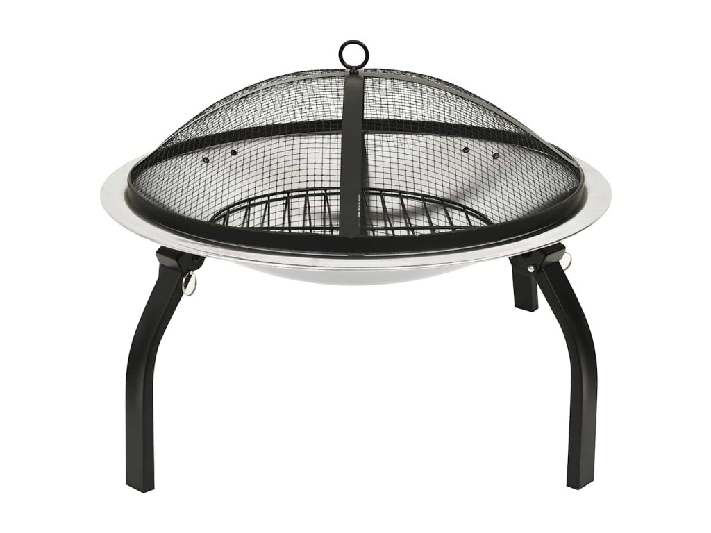 Prenosné ohnisko je vyrobené z nehrdzavejúcej ocele a skvele absorbuje a sála teplo. Tento krb má veľkú misu, ktorá umožňuje vyrobiť veľký oheň, ktorý si môžete vychutnávať vy a vaša rodina celé hodiny. Sieťovina vám umožňuje sledovať horiaci oheň. Oheň aj ohraničuje kvôli bezpečnosti a odletovaniu iskier a nečistôt. V sieťovinovom kryte je navyše praktický krúžok, ktorý vám umožní ľahké prenášanie. Kutáč je možné použiť na odstránenie sieťovinového krytu, ale aj na umiestnenie novej guľatiny. Vďaka mriežke si na ňom môžete aj grilovať. Nohy je možné navyše sklopiť pre ľahkú prepravu.