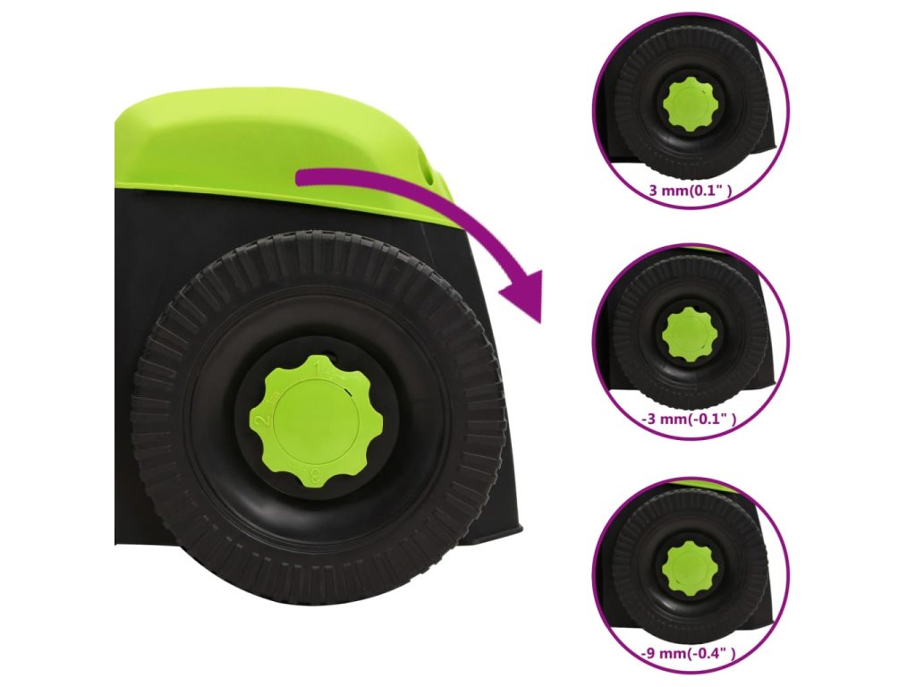 - Variabilná pracovná hĺbka: Vertikutátor je vybavený systémom nastavenia pracovnej výšky v 3 polohách, aby sa prispôsobil potrebám vašej záhrady a ponúkol vám jednoduchú prácu.