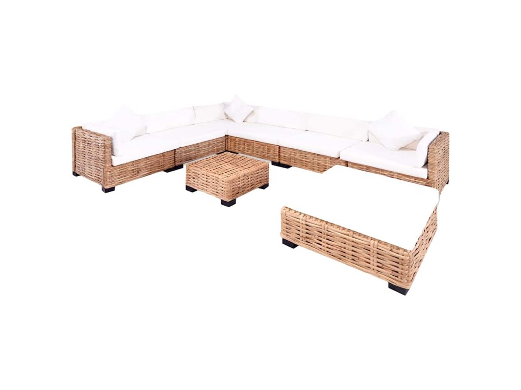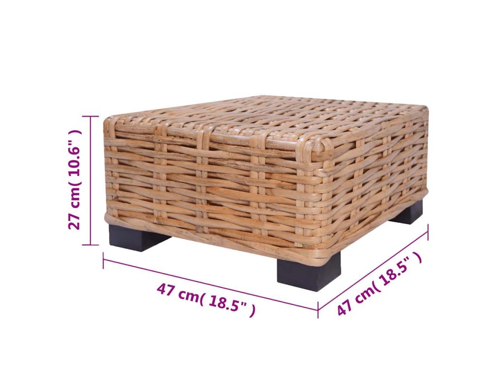 Rám je pokrytý prírodným ratanom, ktorý je nielen atraktívny vďaka svojmu prirodzenému vzhľadu s ozdobným pleteným vzorom, ale je aj veľmi odolný. Nohy pohovky sú vyrobené z kvalitného mahagónového dreva. Podložky poskytujú požadované pohodlie a umocňujú príjemný pocit. Celá súprava dodá vášmu príbytku nádych rustikálneho štýlu! Montáž je jednoduchá.