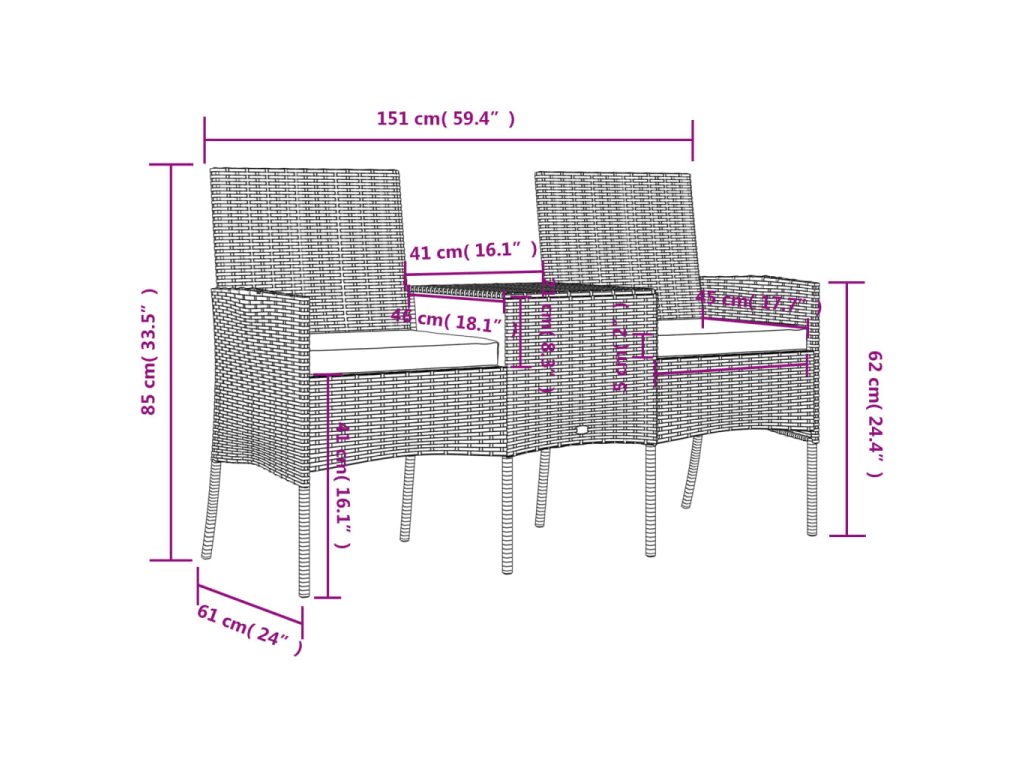 - Pohodlný dizajn: Dve sedadlá sú spojené čajovým stolíkom, na ktorý si môžete odložiť nápoje alebo obľúbené knihy.