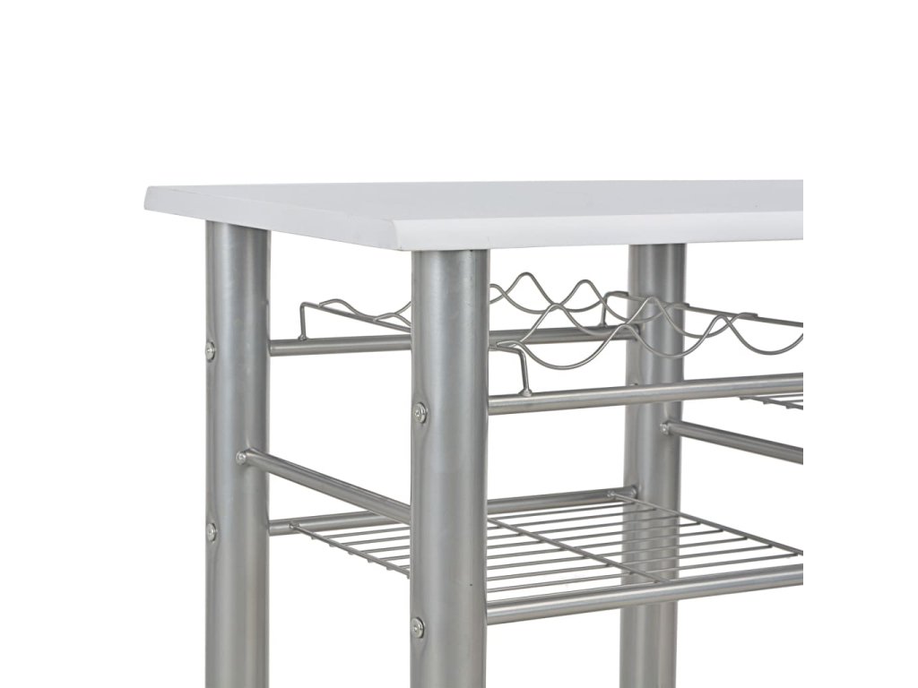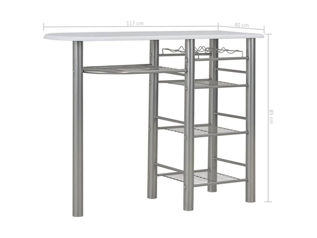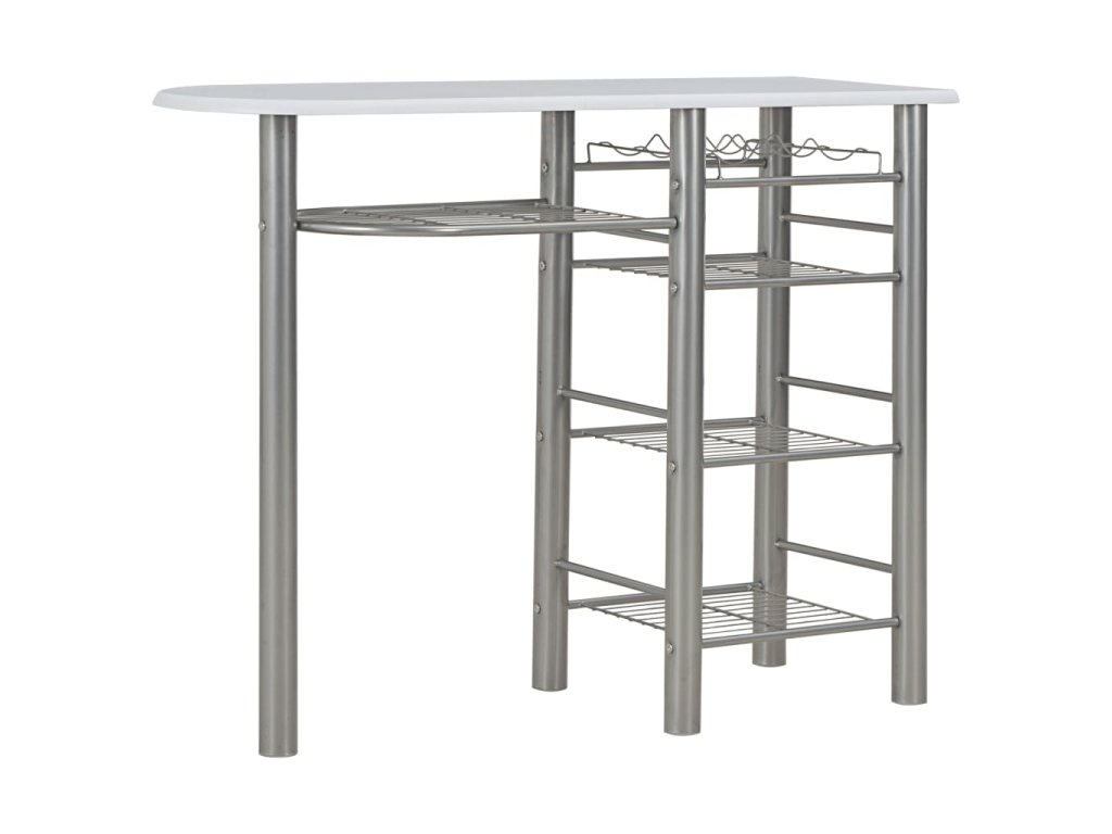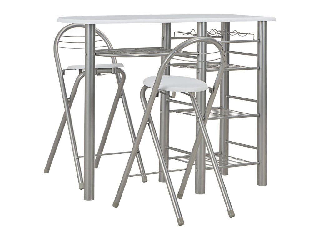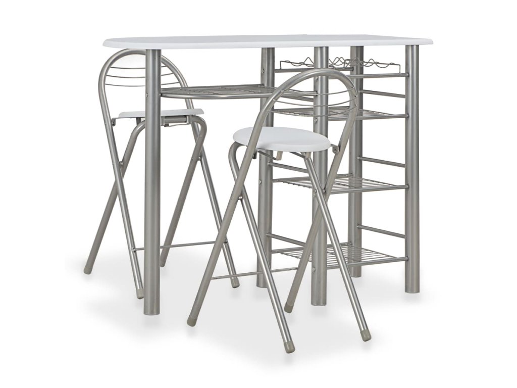 Súprava je vyrobená z trvácneho dreva, a preto sa jej povrch ľahko čistí. Oceľové rámy poskytujú vysokú stabilitu. Stoličky sa dajú poskladať, aby nezaberali veľa miesta, keď sa nepoužívajú. Pod stolom sa nachádza aj niekoľko poličiek a držiak na vínové fľaše, aby ste mali všetko, čo potrebujete, vždy poruke.