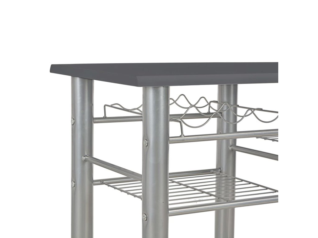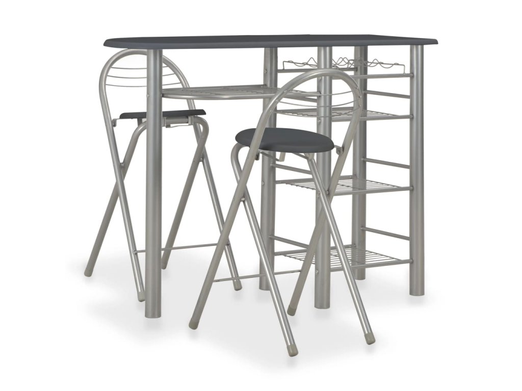 Súprava je vyrobená z trvácneho dreva, a preto sa jej povrch ľahko čistí. Oceľové rámy poskytujú vysokú stabilitu. Stoličky sa dajú poskladať, aby nezaberali veľa miesta, keď sa nepoužívajú. Pod stolom sa nachádza aj niekoľko poličiek a držiak na vínové fľaše, aby ste mali všetko, čo potrebujete, vždy poruke.