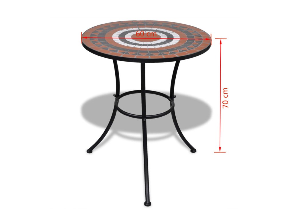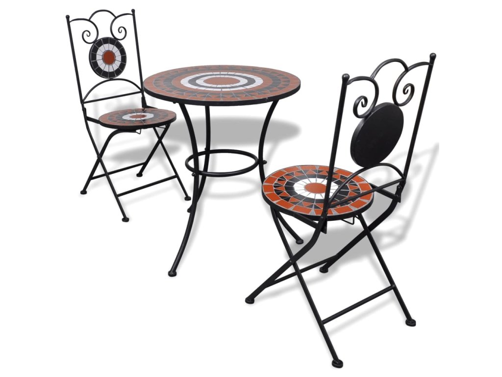 Táto súprava mozaikového stola a stoličiek predstavuje krásnu a praktickú dekoráciu, ktorá do vašej záhrady, na terasu či balkón prinesie romantickú atmosféru. Tento záhradný nábytok vám poskytne skvelé miesto na odpočinok či posedenia pri káve s rodinou a priateľmi.