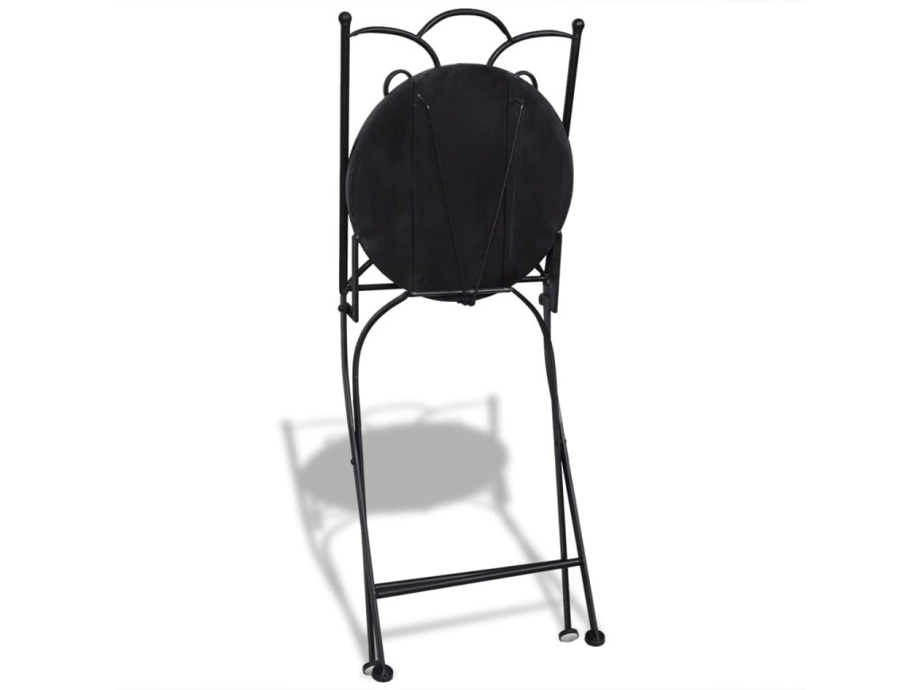 Pevný železný rám s práškovou povrchovou úpravou tomuto výrobku dodáva stabilitu a trvácnosť. Sedadlá stoličiek a doska stola sú vyrobené z keramiky, a tak sú vodovzdorné a dajú sa bez problémov očistiť.