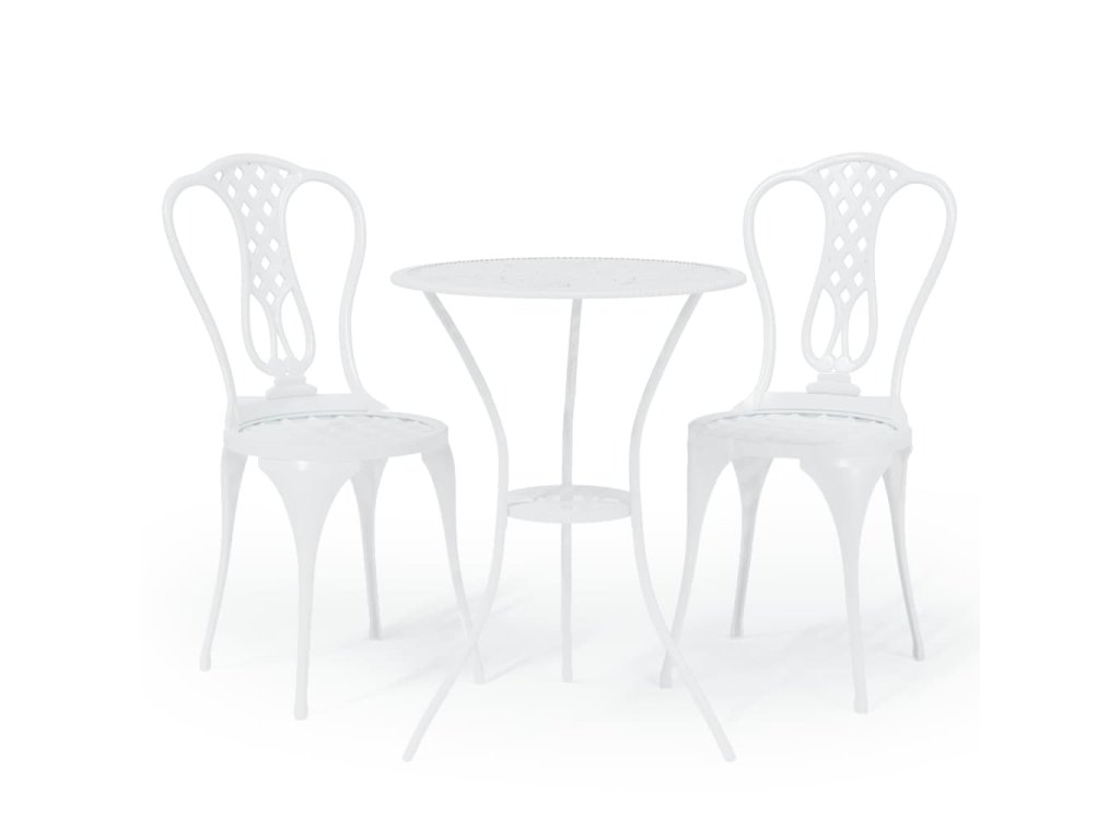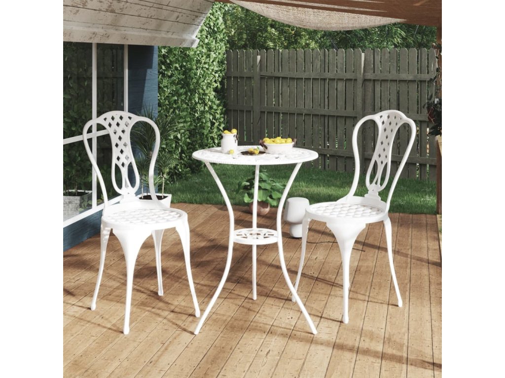Bistro súprava na terasu je vyrobená z odlievaného hliníka, ktorý je veľmi trvácny a odolný voči poveternostným vplyvom. Detailne prepracovaný kvetinový vzor vnesie romantickú atmosféru do každej záhrady, na terasu či do zimnej záhrady.