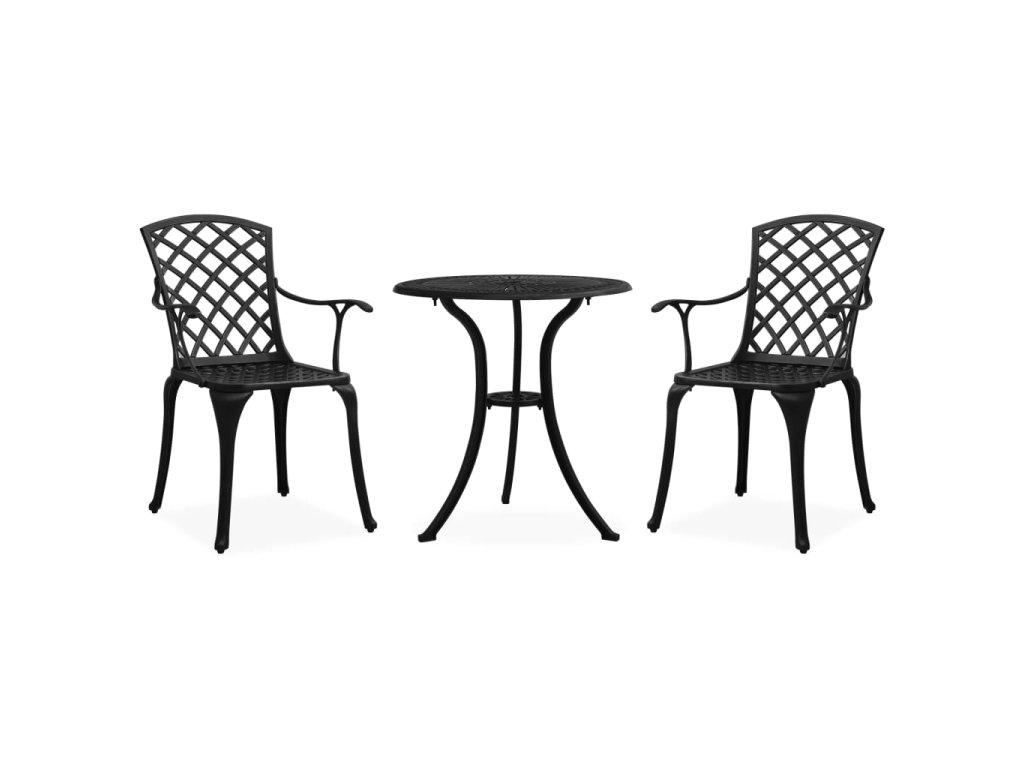 Stoličky a stôl sú vyrobené z liateho hliníka odolného voči poveternostným vplyvom, takže si bistro súpravu môžete užívať ešte dlhé roky. Tieto záhradné stoličky majú vysoké operadlá a sedadlá so zaobleným dizajnom. Ergonomicky zakrivené podrúčky pomôžu efektívne uvoľniť vaše ruky. Robustná stolová doska má nádherné vzory a je vhodná na odkladanie nápojov, jedla a ďalších nevyhnutných vecí. Táto sada vonkajšieho nábytku je ideálna na raňajky alebo dlhé popoludňajšie rozhovory.
