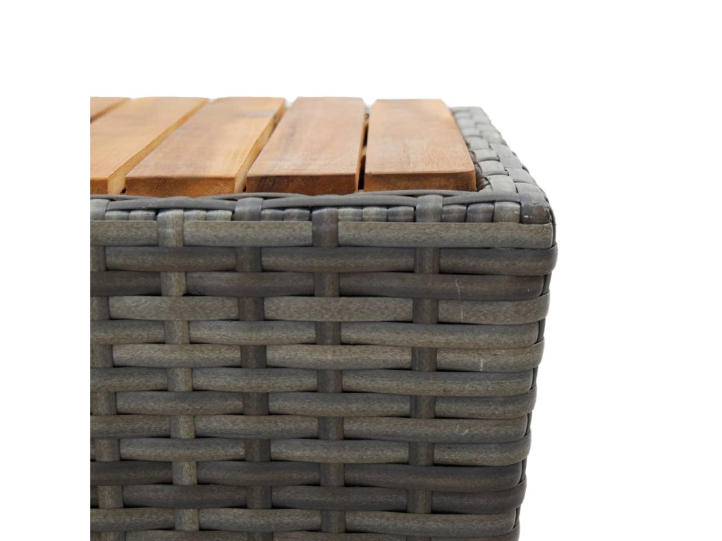 - Materiál: Polyratan, oceľ, tkanina (100 % polyester), masívne akáciové drevo s olejovou úpravou