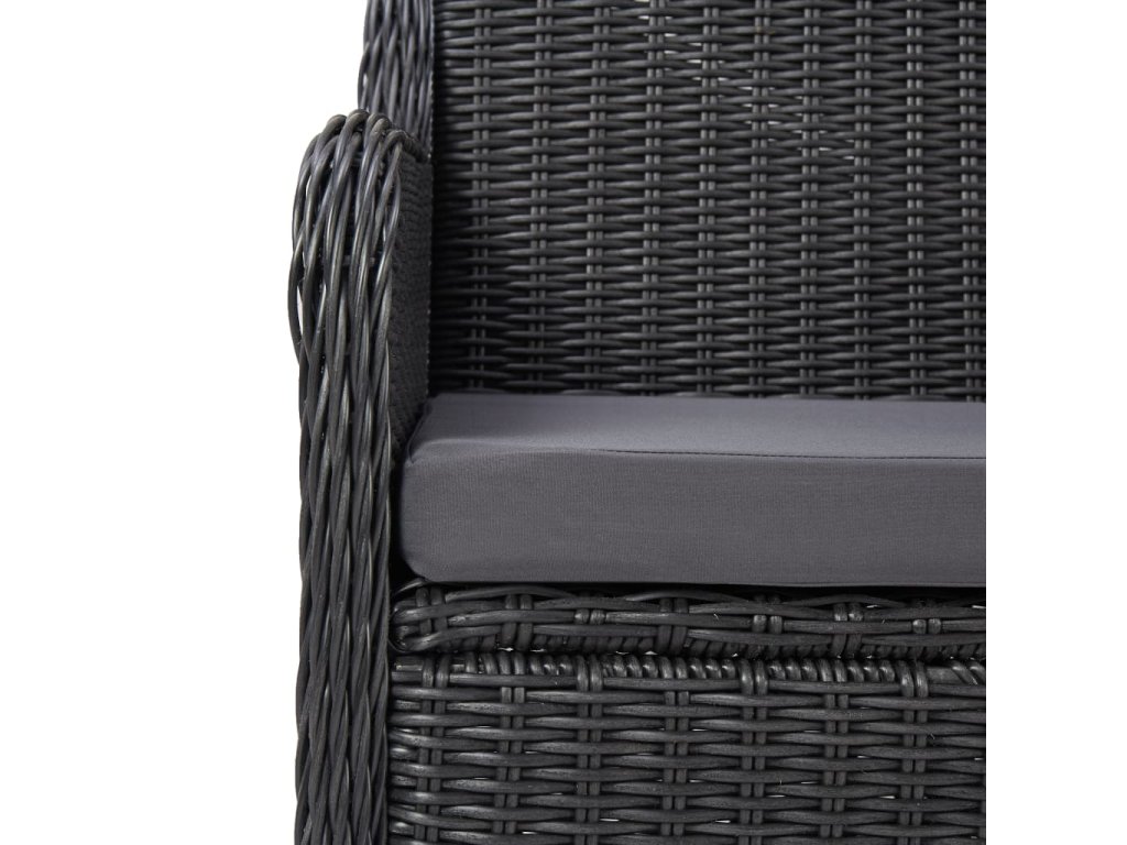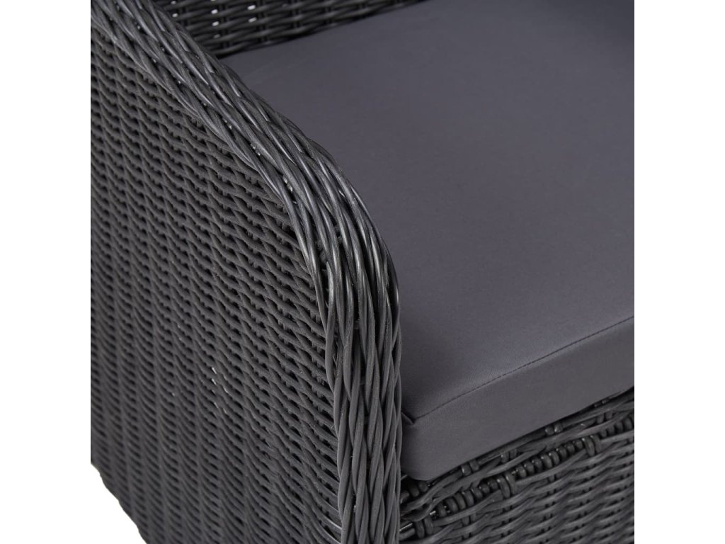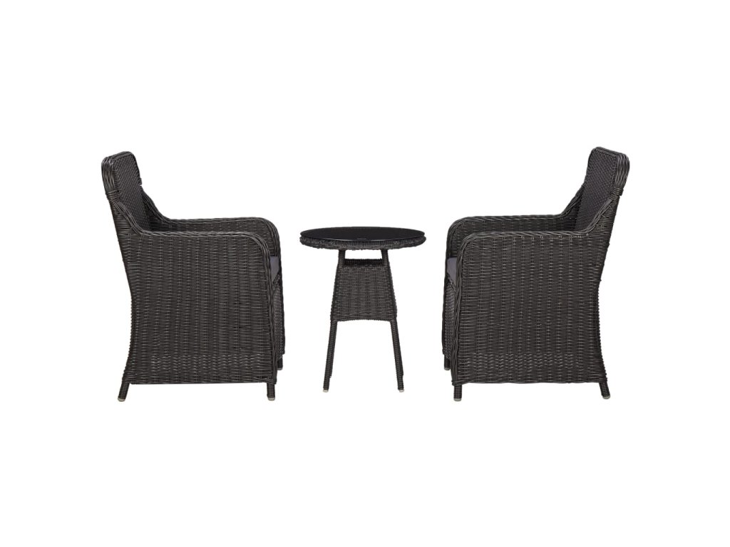Táto sada má pevný oceľový rám ručne opletený PE ratanom odolným voči poveternostným vplyvom. Je odolná voči hrdzi a plesniam, čo môže poskytnúť roky kvalitnej relaxácie. Dodáva sa aj s veľmi pohodlnými hrubými vankúšmi pre maximálny komfort. Polyesterové poťahy vybavené zipsami s jednoduchou údržbou, sa dajú zvliecť a oprať. Stolová doska z čierneho skla sa navyše ľahko čistí vlhkou handričkou. Balenie obsahuje 2 stoličky, 1 čajový stolík a 2 podsedáky.