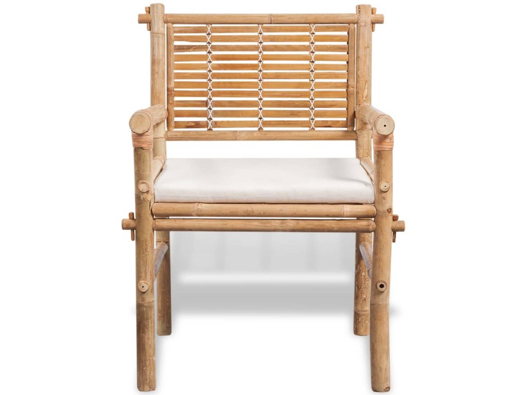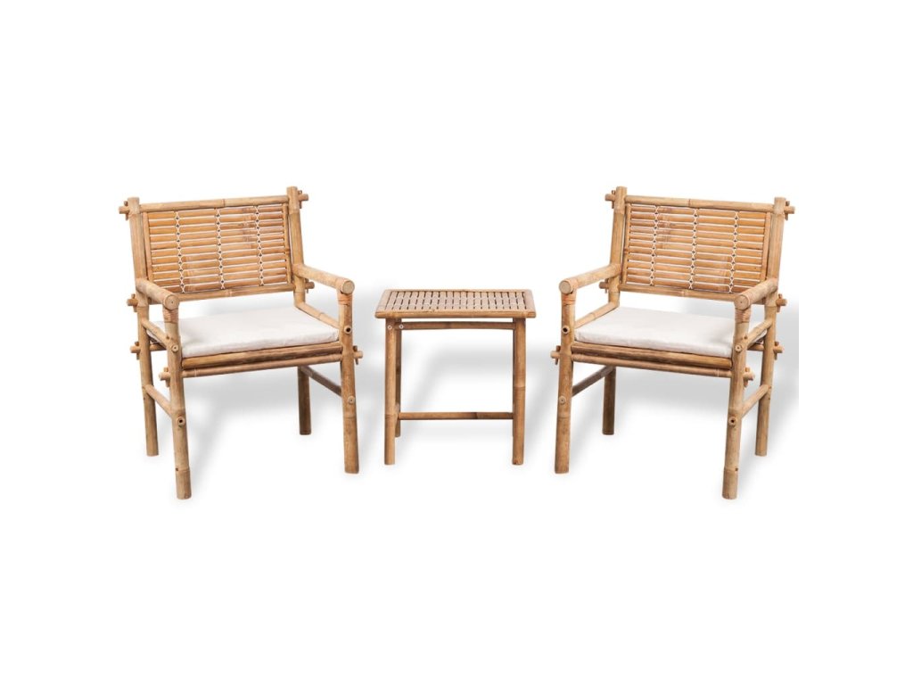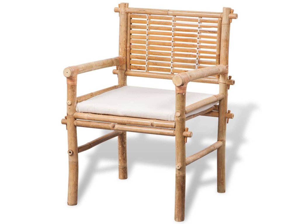 Táto sada stola a stoličiek je vyrobená z bambusu, ktorý je vodeodolný a odolný voči vplyvom počasia, a tak je súprava trvácna a stabilná. Jednoducho sa čistí pomocou navlhčenej handričky. Zahrnuté sedáky dodávajú sedeniu komfort.