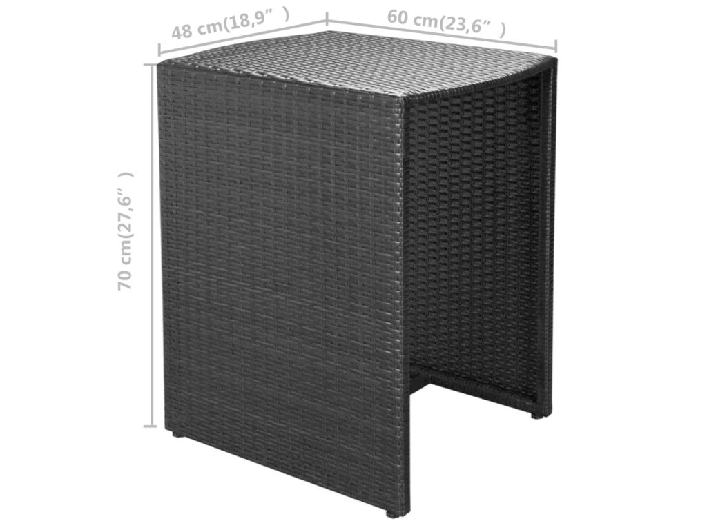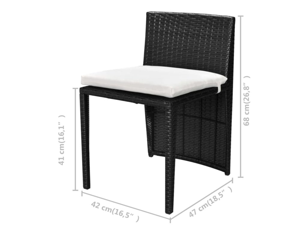 Stôl a stoličky majú oceľový rám, vďaka čomu sú pevné a robustné. Majú ľahkú konštrukciu, takže sa jednoducho presúvajú. Jedálenská súprava je vyrobená z PE ratanu, ktorý je vodeodolný a odolný voči vplyvom počasia. Súprava je tak vhodná na každodenné vonkajšie používanie a jednoducho sa čistí. Mäkké sedáky sú veľmi pohodlné. Sada je ideálna na balkóny alebo menšie terasy a záhrady, keďže sa pre ušetrenie priestoru dajú stoličky pohodlne uložiť pod stôl.