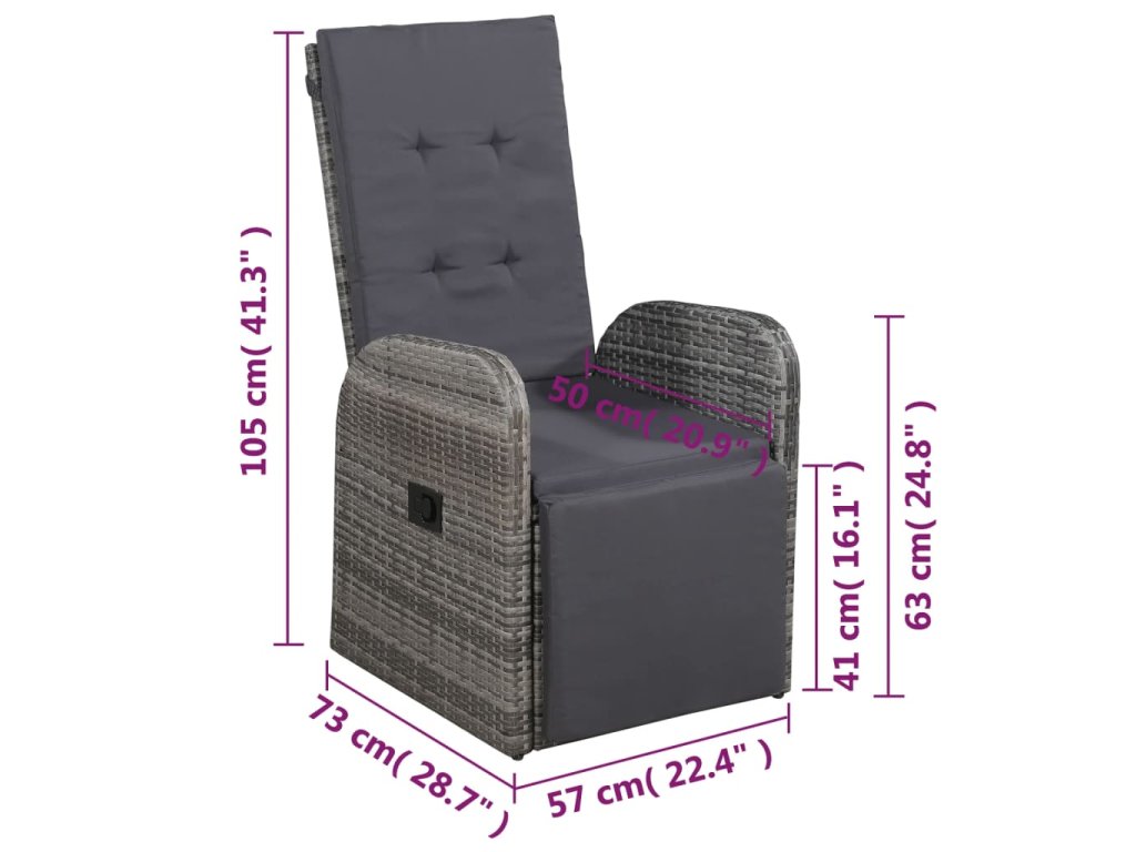 - Rozmery kresla (sklopené): 57 x 127 x 97 cm (Š x H x V)