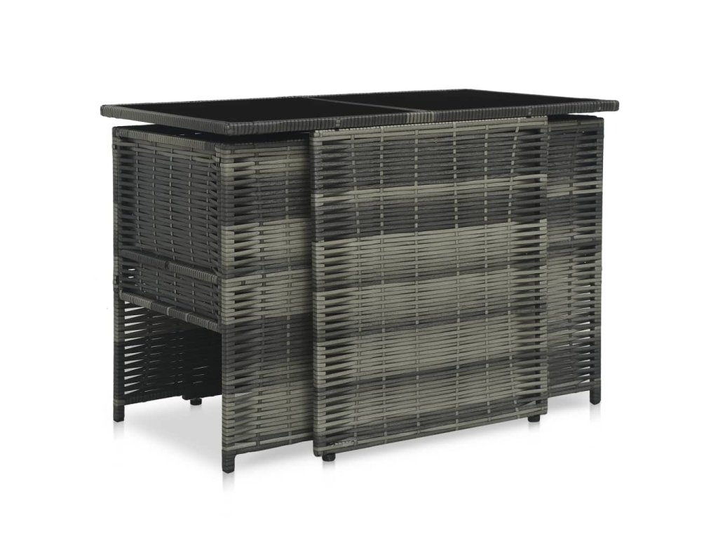 Táto jedálenská súprava je vyrobená z PE ratanu, pričom doska na stole je zo skla. Súprava je vodeodolná a odolná voči vplyvom počasia. Jednoducho sa čistí, je trvácna a vhodná pre každodenné použitie. Oceľový rám s práškovým nástrekom robí stôl a stoličky veľmi robustnými a odolnými. Vďaka ľahkej konštrukcii sa všetky časti súpravy jednoducho presúvajú. Keď sa nepoužíva, stoličky sa môžu umiestniť pod stôl. Hrubé odnímateľné vankúše sú veľmi pohodlné. Poťahy so zipsmi sa dajú ľahko odstrániť a vyčistiť.