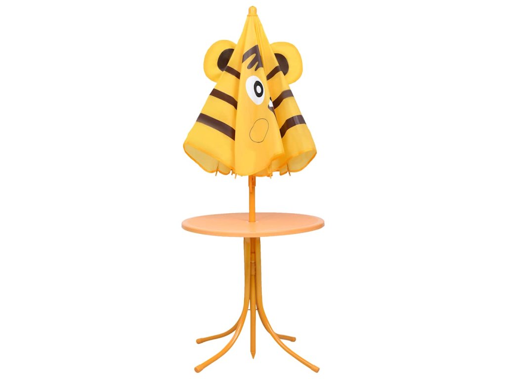 Táto záhradná súprava je špeciálne navrhnutá pre deti, aby si užívali chvíle strávené vonku na záhrade alebo terase. Súprava obsahuje jeden stolík, dve stoličky a slnečník.