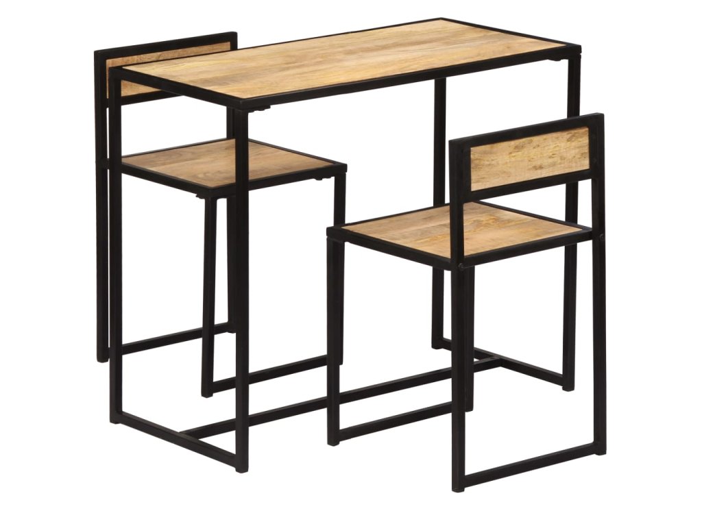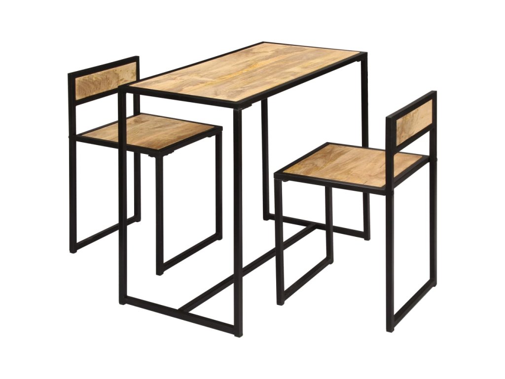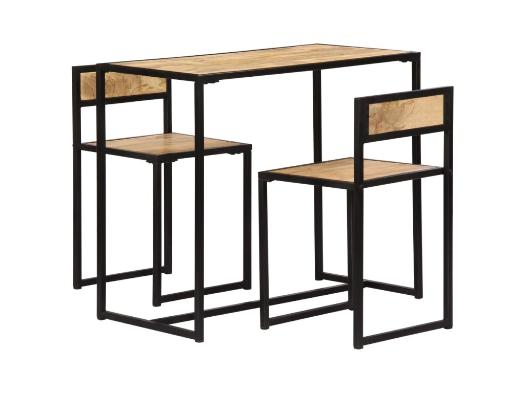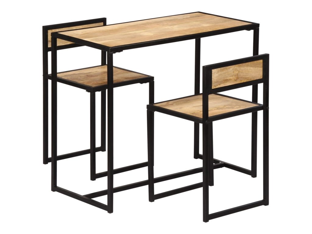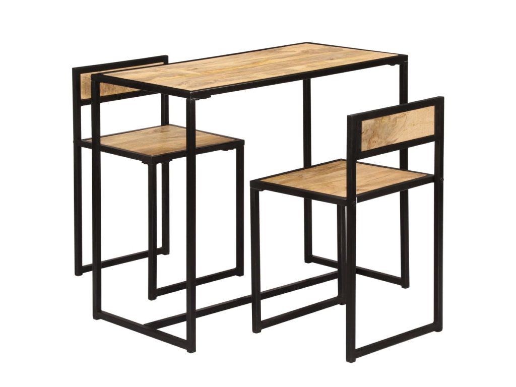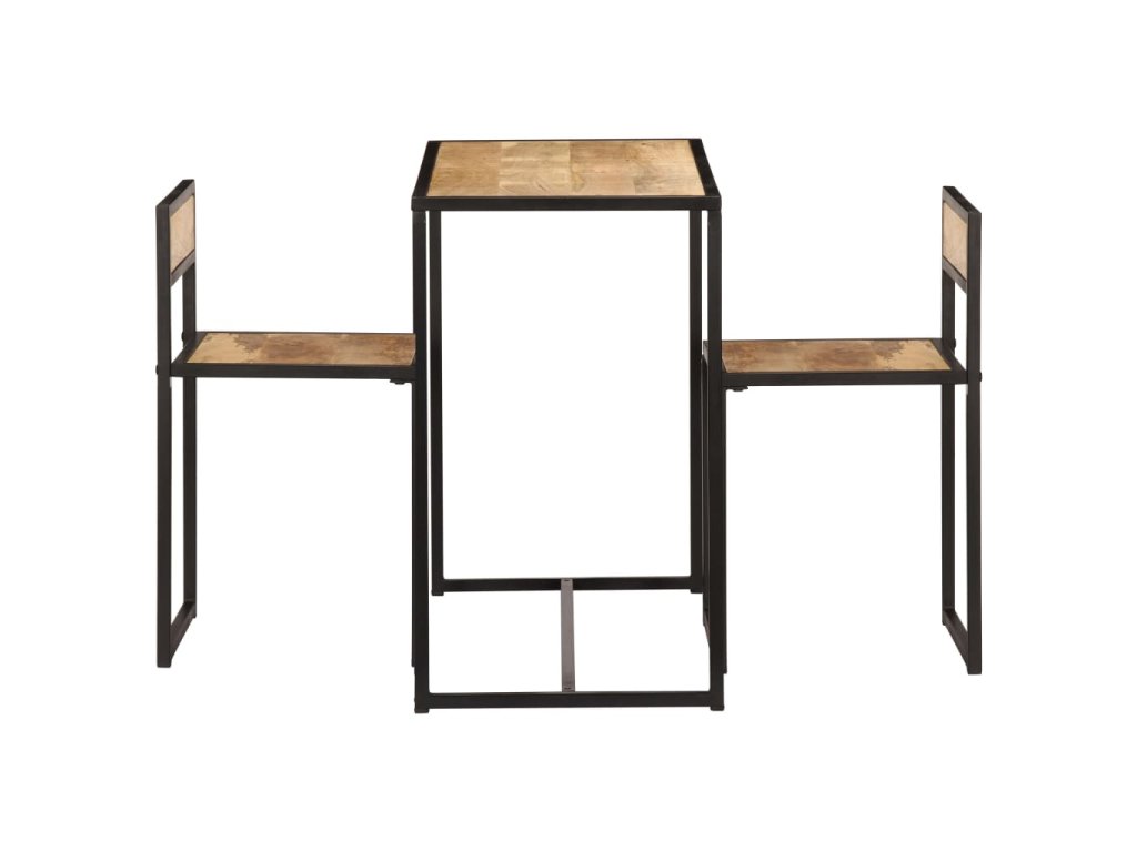 Jedálenský stôl a stoličky sú vyrobené z masívneho mangovníkového dreva, tvrdého dreva s hustou štruktúrou. Hrubé mangovníkové drevo má nielen silu, aby unieslo záťaž, ale tiež vydrží dlhodobé používanie. V dôsledku toho je táto jedálenská súprava vo vintage štýle krásna a veľmi odolná. Odolný práškovaný železný rám navyše zvyšuje stabilitu a pevnosť stoličiek a stola.