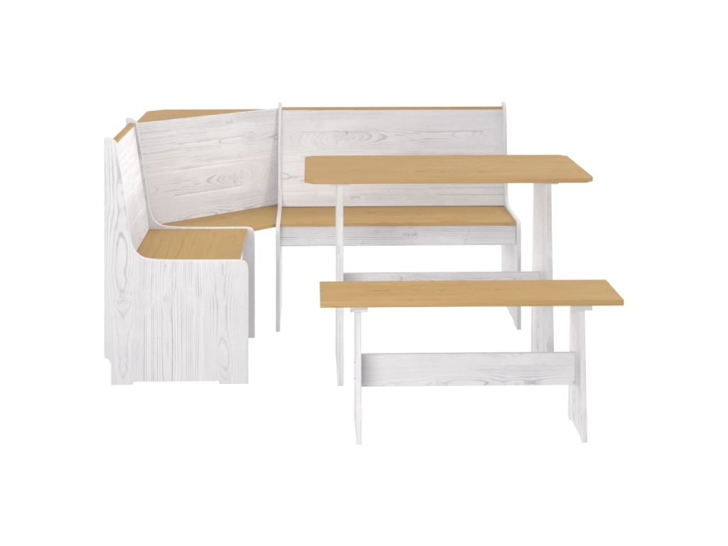Jedálenská súprava je vyrobená z borovicového masívu a vyniká svojou trvácnosťou. Operadlo rohovej lavice prináša optimálne pohodlie pri sedení. Dlhú lavičku môžete zostaviť s krátkou časťou naľavo alebo napravo podľa toho, kam ju chcete umiestniť. Stolík je ako stvorený na položenie jedál a nápojov a poslúži nielen na pohodové večere, ale aj ako skvelé miesto na riešenie domácich úloh či dokončovanie rôznych domácich projektov.