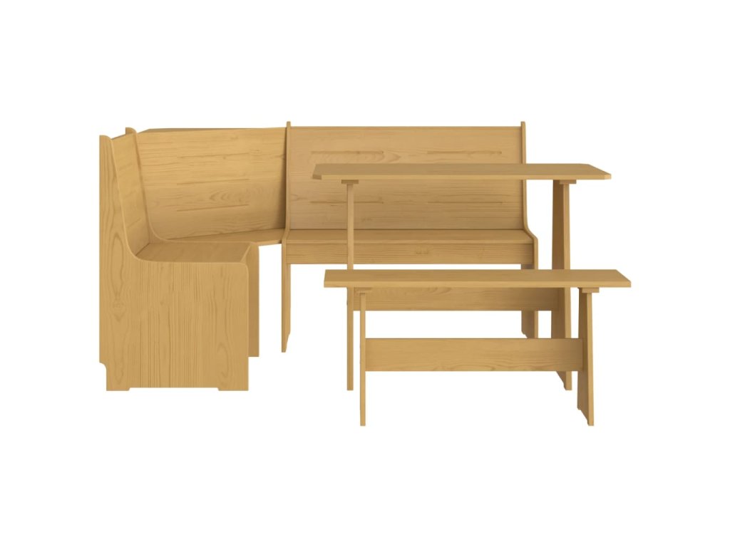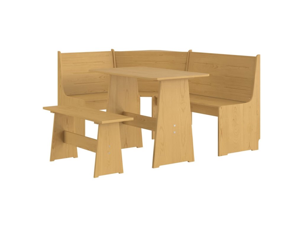 Jedálenská súprava je vyrobená z borovicového masívu a vyniká svojou trvácnosťou. Operadlo rohovej lavice prináša optimálne pohodlie pri sedení. Dlhú lavičku môžete zostaviť s krátkou časťou naľavo alebo napravo podľa toho, kam ju chcete umiestniť. Stolík je ako stvorený na položenie jedál a nápojov a poslúži nielen na pohodové večere, ale aj ako skvelé miesto na riešenie domácich úloh či dokončovanie rôznych domácich projektov.
