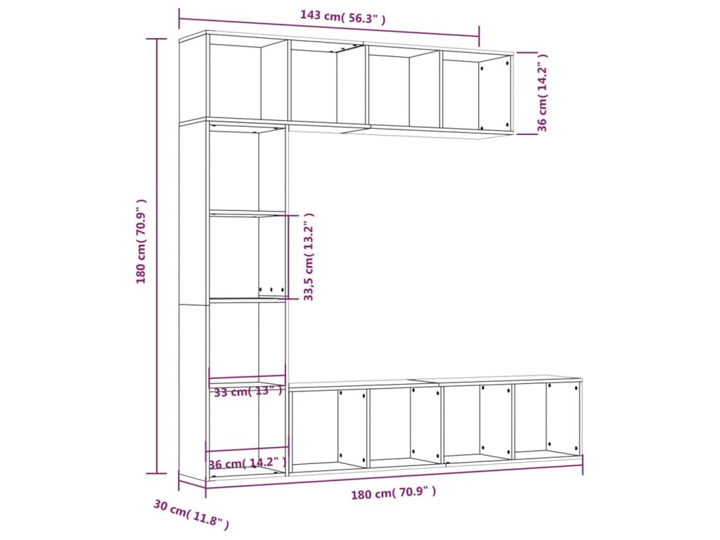 - Priestranný úložný priestor: Knižnica je navrhnutá s 12 priehradkami, ktoré poskytujú dostatok miesta na uloženie vašich časopisov, kníh, DVD, multimediálnych zariadení a rôznych iných položiek, ktoré budete mať dobre zorganizované.