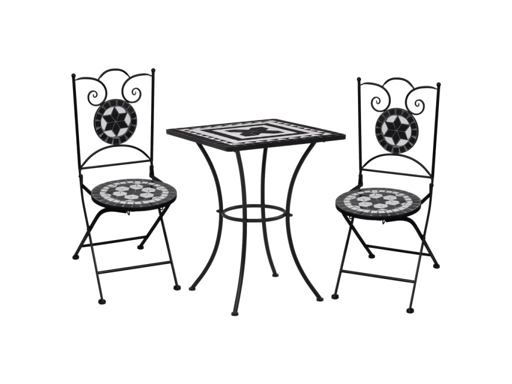 Táto súprava mozaikového stola a stoličiek predstavuje krásnu a praktickú dekoráciu, ktorá do vašej záhrady, na terasu či balkón prinesie romantickú atmosféru. Tento záhradný nábytok vám poskytne skvelé miesto na odpočinok či posedenia pri káve s rodinou a priateľmi.