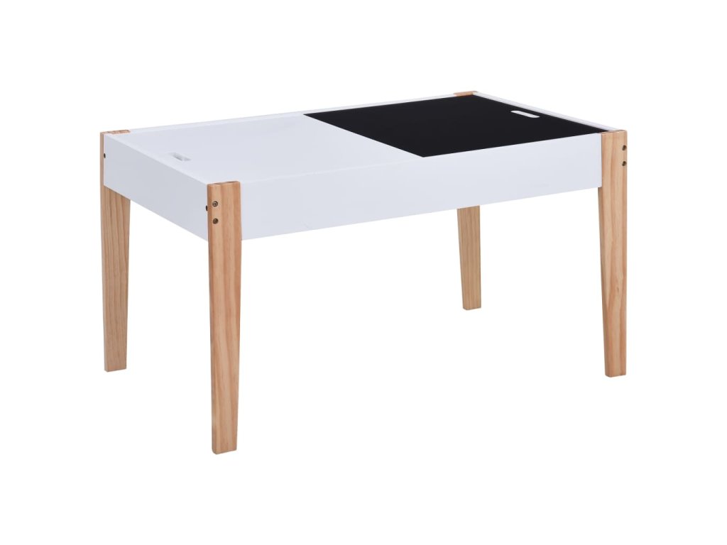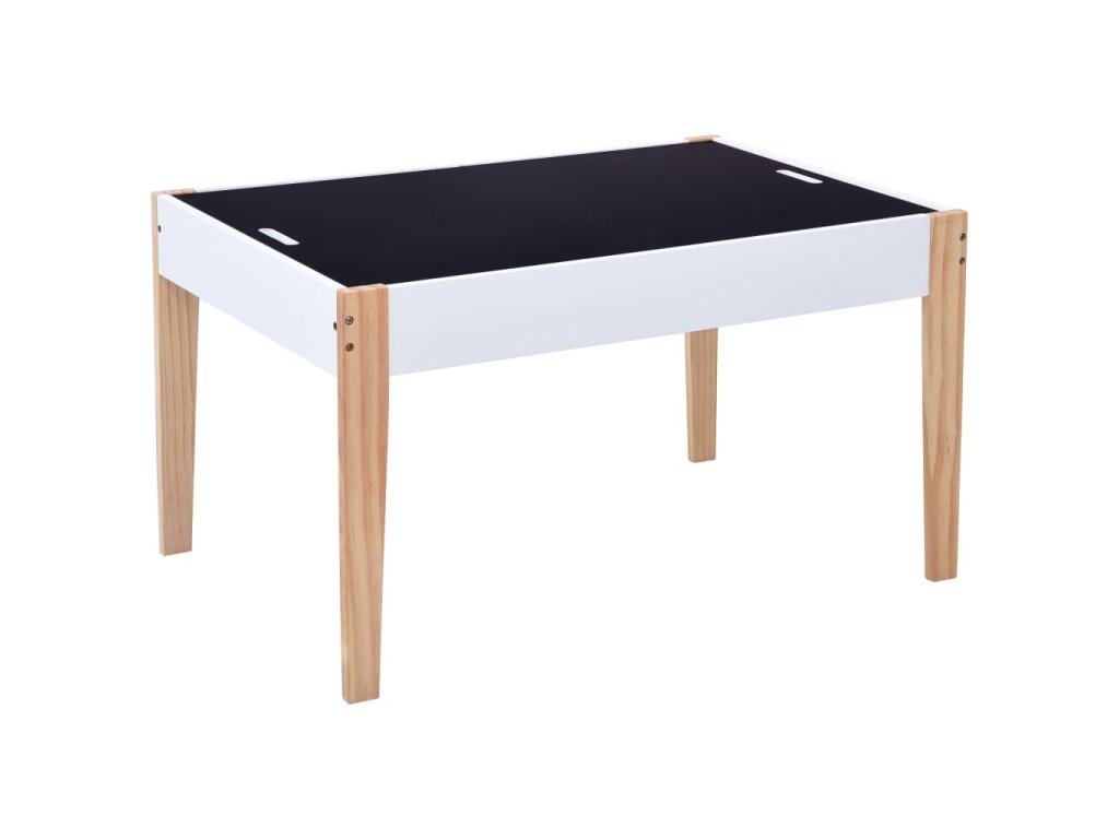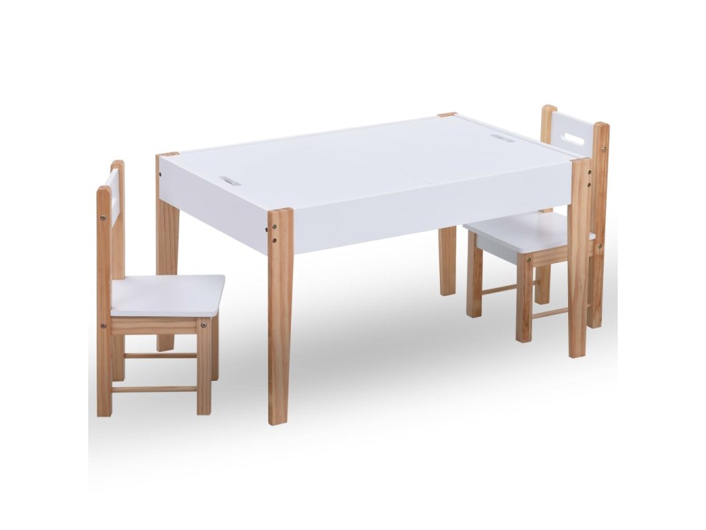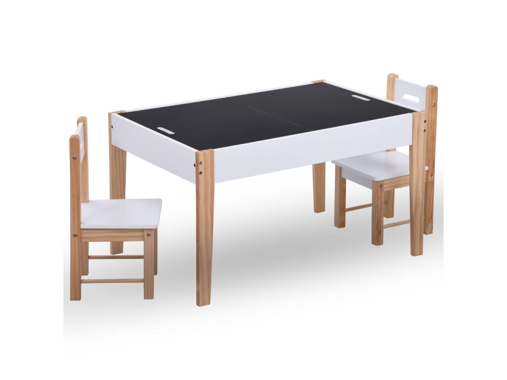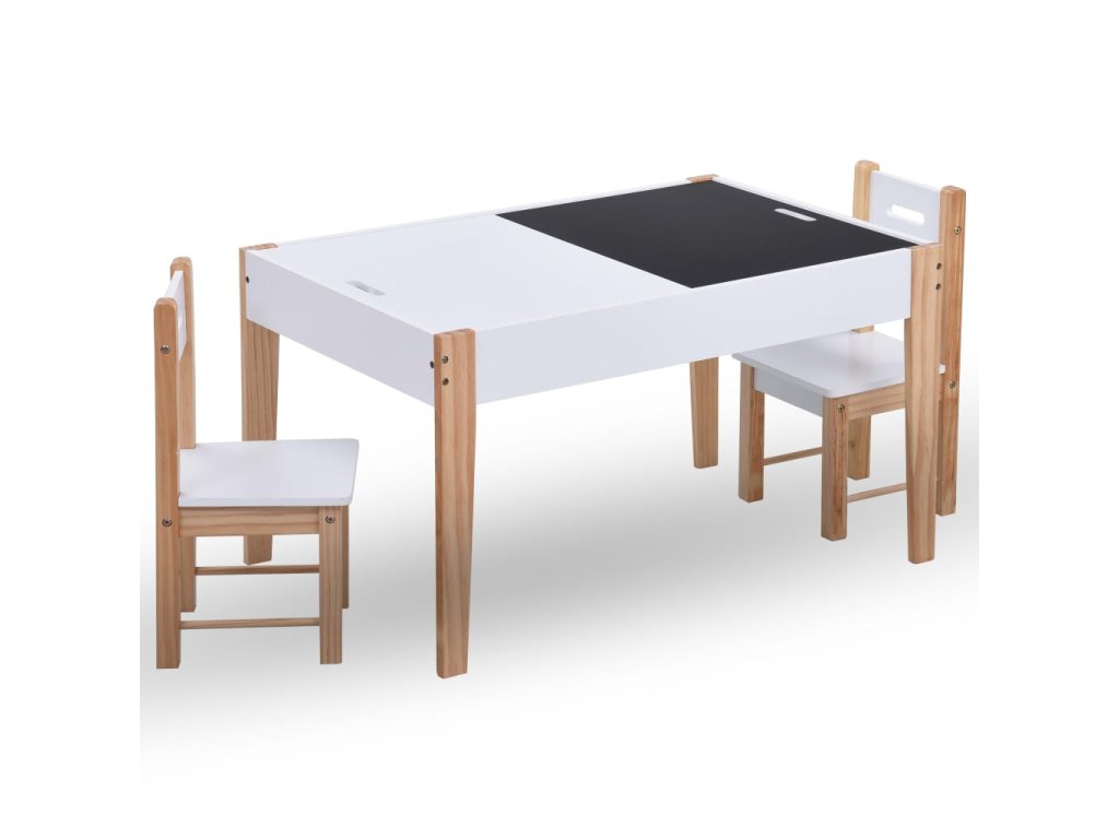 Táto sada stola s 2 stoličkami je vyrobená z MDF a borovicového dreva s lakovaným náterom a poskytuje ideálne miesto na hranie, občerstvenie či čítanie pre dve deti. Na kriedovú tabuľu na stolovej doske si deti môžu kresliť. Pod stolom sa navyše nachádza praktický úložný priestor. Vďaka jednoduchému vzhľadu a primeranej veľkosti predstavuje táto sada užitočný doplnok do každej herne, detskej izby alebo obývačky!